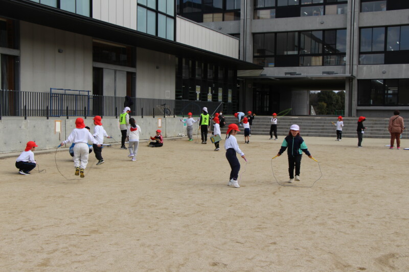2月 24 2026 なわとび週間 2月16日からなわとび週間が始まりました。昼休みに体育委員がなわとび検定をしてくれたり、とび方を教えてくれたりしています。特に低学年の児童はお兄さんお姉さんが親切に教えてくれるので喜んで参加しています。なわとび検定に合格した児童も嬉しそうに報告してくれます。