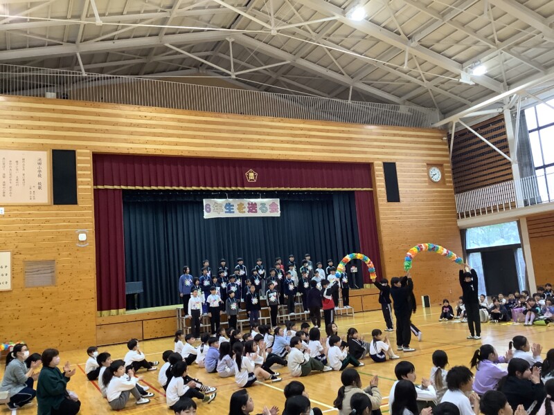 2月 27 2026 6年生を送る会 2月27日に6年生を送る会を行いました。どの学年も準備から頑張りました。1~5年生は、6年生にしてもらって嬉しかったことと、6年生から引き継ぎたい(池田小学校を笑顔あふれる安心安全な学校にしていきたい)ことを、メッセージや合唱、ダンスなどに込めて贈りました。6年生からは1〜5年生に向けて、送る会のお礼と今後の期待の気持ちを込め、心のこもった言葉と素敵な「桜ノ雨」の合唱を贈りました。