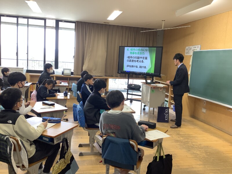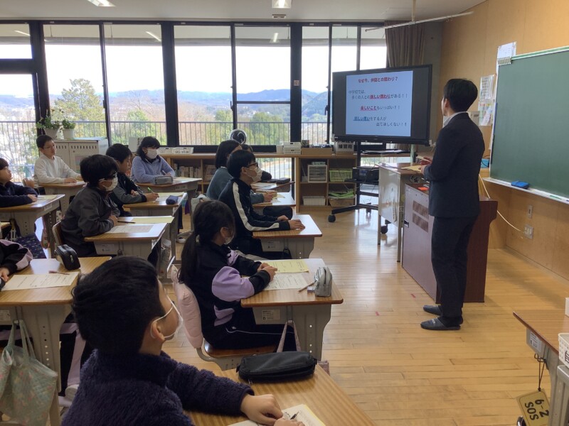 3月 09 2026 【6年生】生徒指導主事講話 3月9日に小泉中と平和中の生徒指導主事の先生の講話を学区に分かれて聞きました。中学校では新しい出会いがあります。人との関わり方について、「こんなときどうする?」というようなことを考える場面もあり、実際の生活を見越した話を聞くことができました。