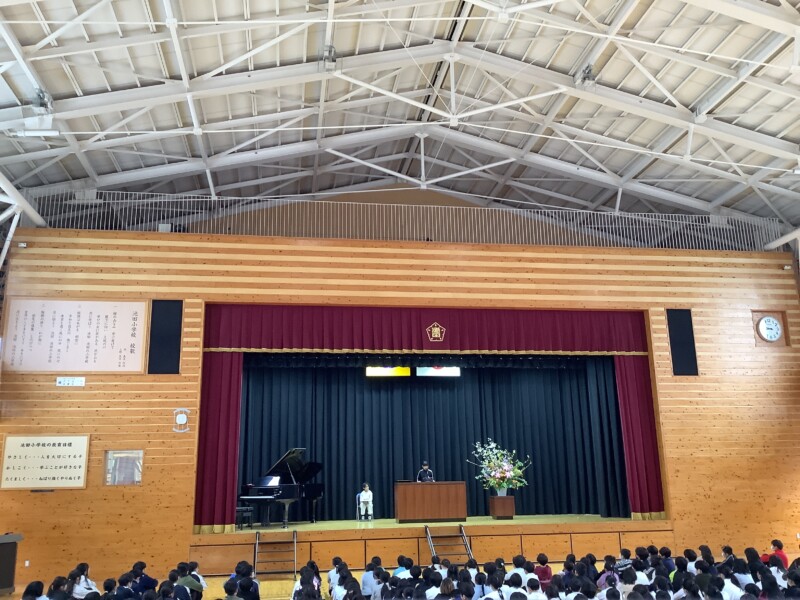 3月26日に令和7年度修了式を行いました。1年生代表児童は、おもちゃフェスティバルの運営や縄跳びを頑張ったこと、児童会執行部代表児童は、挨拶活動や全校のために自ら動いて頑張りたいことを話してくれました。どの児童ももうすぐ一学年上がることを見据えて頑張りたい気持ちを持っているようです。どんな一年を迎えるか楽しみですね。