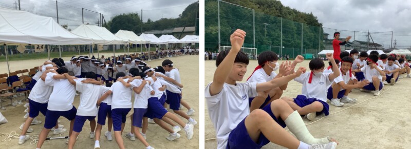 10月 01 2025 体育祭 --> 朝の空模様では順延も考えられましたが、無事体育祭を開催することができました。競技や役割に取り組む生徒たちの生き生きとした表情に、充実感が表れていました。参観してくださった保護者の皆様、地域の皆様、ありがとうございました。体育祭を話題にして、話に花が咲くことを願っています。