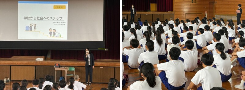 いよいよ後期が始まりました。2年生は16日・17日の両日、職場体験に出かけます。事前学習を兼ねて、ハローワーク多治見から講師を招き、お話を聞きました。