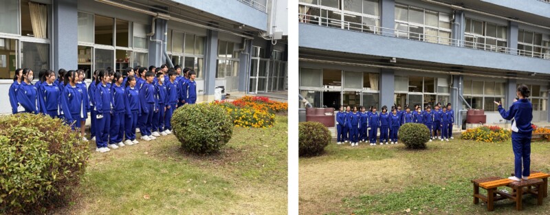 11月 18 2025 中庭合唱 3年生の生徒に誘われて、中庭での合唱を聞きに行きました。歌い終わると、図書室や中舎廊下、北舎2階3階から拍手が聞こえてきました。ちょっと肌寒い天気でしたが、心地よい歌声に心が温かくなりました。明日の合唱祭が楽しみです。