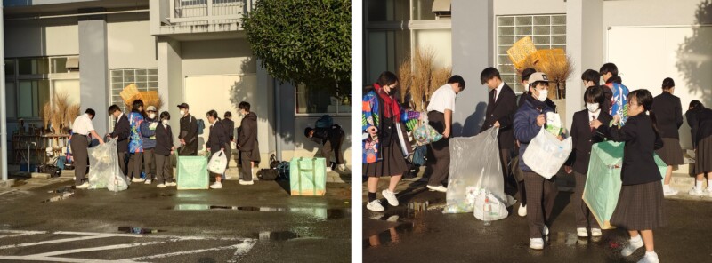 11月 28 2025 アルミ缶・牛乳パック・ペットボトルキャップ回収 今日の回収では、アルミ缶344個、牛乳パック82枚、ペットボトルキャップ10275個が集まりました。ペットボトルキャップは昨日の小学校回収との合算です。ありがとうございました。次回、小学校のペットボトル回収は12月11日(木)、中学校の回収は12月12日(金)です。ご協力お願いします。