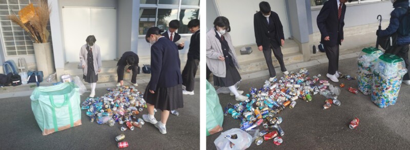 12月 12 2025 アルミ缶・牛乳パック・ペットボトルキャップ回収 今日の回収では、アルミ缶298個、牛乳パック171枚、ペットボトルキャップ7,110個が集まりました。ありがとうございました。次回は令和7年最後の回収です。小学校のペットボトル回収は12月25日(木)、中学校の回収は12月26日(金)です。ご協力よろしくお願いします。