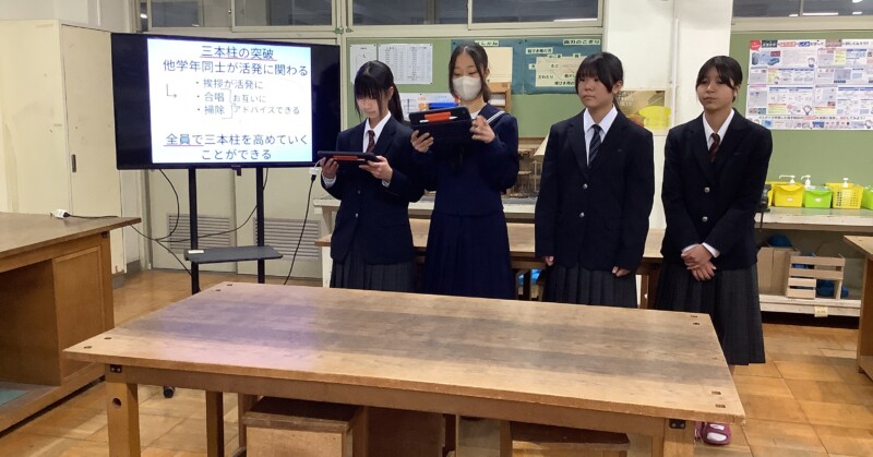 2月 25 2026 令和8年度にむけて 先日の生徒会役員選挙で選出された新執行部が、令和8年度生徒会スローガンの校長承認に来室しました。継泉の会での卒業生、在校生の発表を受け、小泉中学校のさらなる発展をめざしていると感じました。来年度の生徒会活動も期待できそうです。