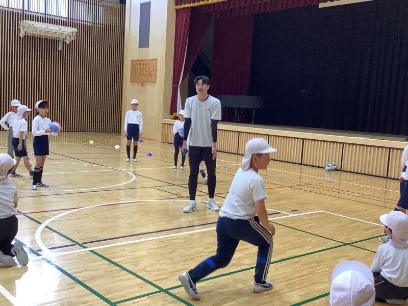 2月 27 2026 3年 元プロサッカー選手とスポーツ交流 2月27日(金)、3年生は元プロサッカー選手、高井健太さんとスポーツ交流をしました。ボールを使ってパス回しをしたり、リレーをしたり、ゲーム感覚で楽しく45分間めいっぱい体を動かしました。高井先生は、ご自分のプロでの経験を活かし、子どもたちにわかりやすくアレンジしたトレーニング方法を伝えてくださり、みんな楽しそうに取り組んでいました。体を動かすことの楽しさを体感できた時間となりました。