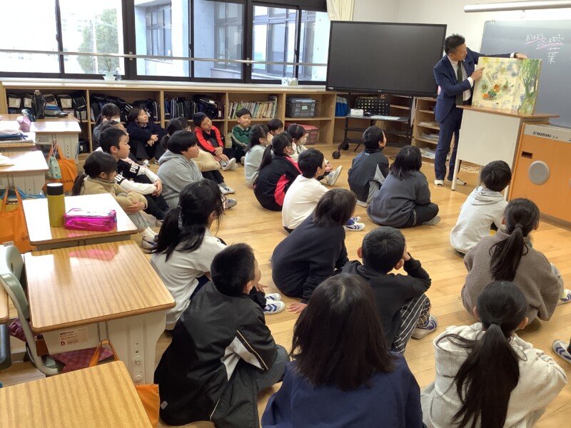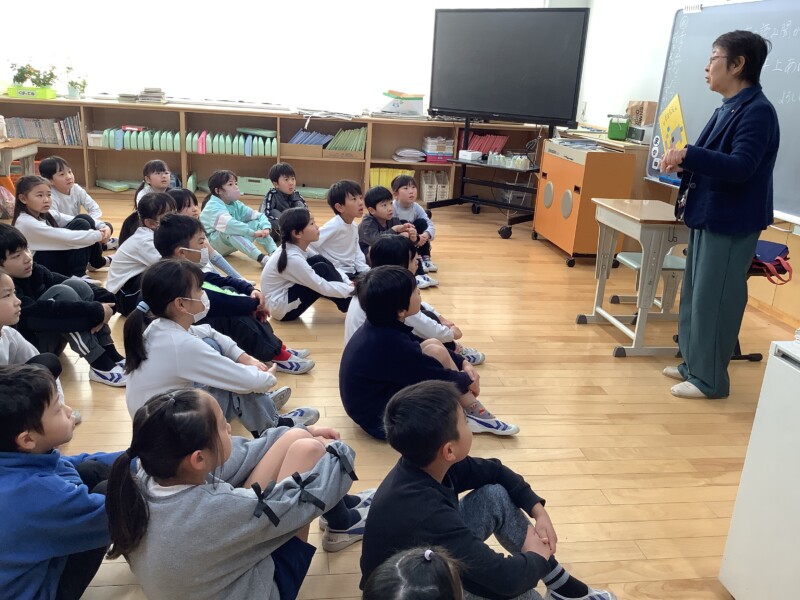 1月 19 2026 朝の読み聞かせ① 1・2年生 1月19日(月)から図書祭りが始まりました。その取り組みの一つとして、地域の皆さんによる朝の読み聞かせがあります。PTA役員さん、学校運営協議会の方、公民館の館長さん、図書ボランティア「エルマー」の方、学童の職員さん、市議会議員の方、地域の応援団の方など、本当にいろいろな方に協力していただきました。子どもたちは、キラキラと目を輝かせ、本の世界に入り込んで聞き入っていました。素敵な時間をありがとうございました。