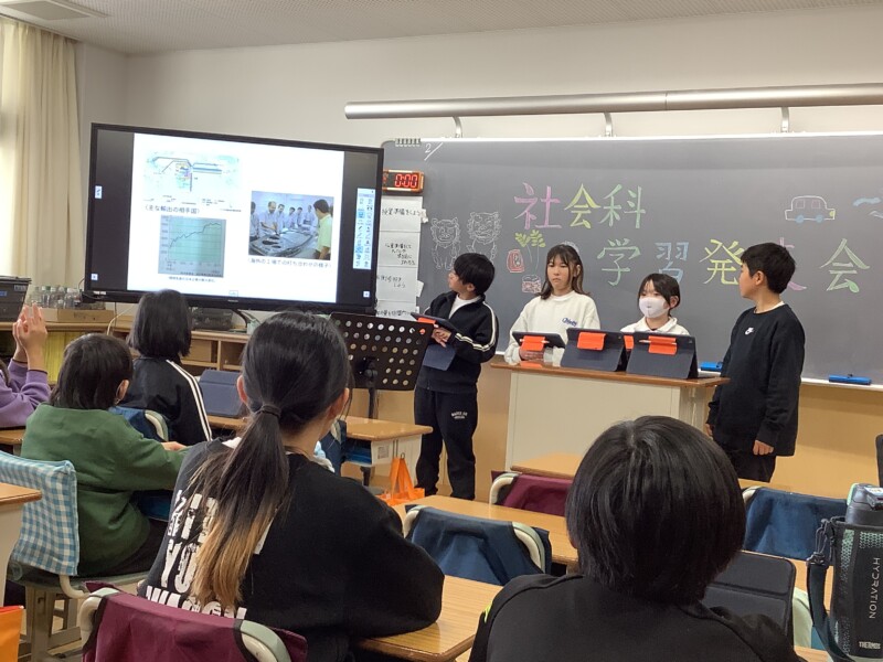 2月 06 2026 今年度最後の授業参観③ 高学年 2月5日(木)は、5・6年生の今年度最後の授業参観でした。5年生は社会科学習の発表会、6年生は国語の学習「今、私は、ぼくは」のスピーチ発表でした。さすが高学年、自分でプレゼンを作成し、見せながら、しっかりと発表していました。特に、6年生は、一人ずつ今の自分が思うこと、将来に向けて頑張りたいことを堂々と発表し、成長を感じました。懇談会では、どの学年も写真などで学校生活の様子をお知らせしました。多くの保護者の皆様の参観、ありがとうございました。