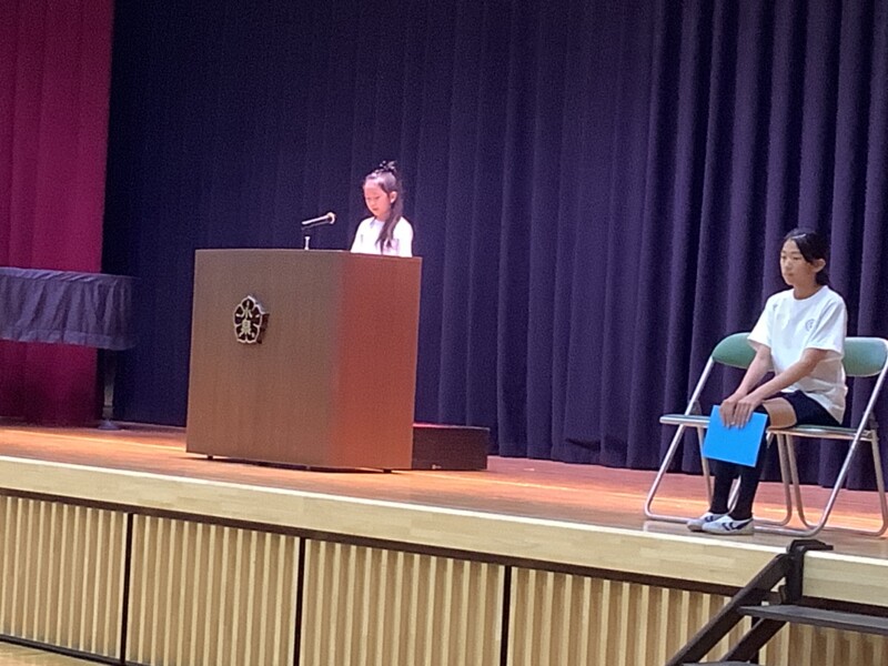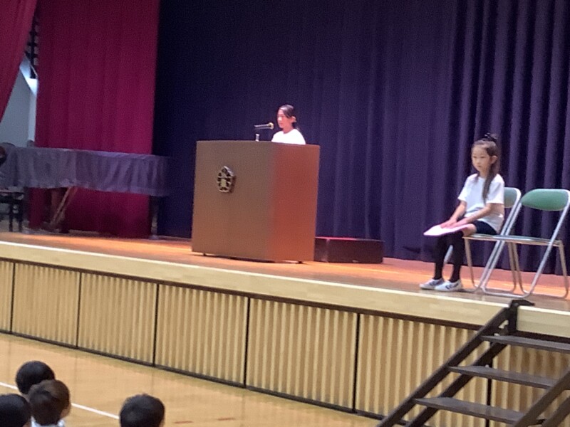 10月 14 2025 後期始業式 10月14日(火)、後期の始業式を行いました。あいさつ、ぽかぽか言葉を大切にして、みんなで「えがおがひかる小泉小」をつくっていこうという校長先生のお話がありました。3年生、6年生の代表児童による「後期がんばりたいこと」の作文発表もあり、二人ともとても立派に決意表明をしました。どの子も目当てをもって後期のスタートを切ってほしいです。