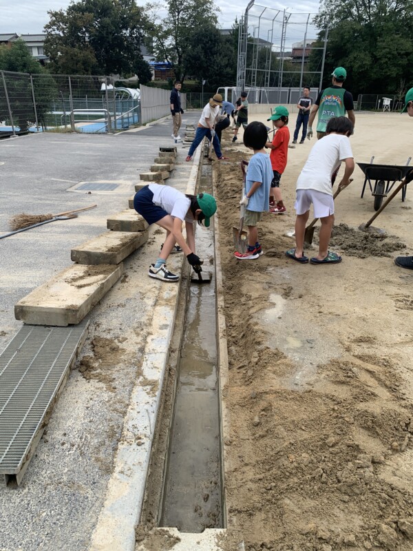 10月 19 2025 ヤシロン応援団による運動場側溝掃除 10月19日(日)、資源回収の後、午後から、ヤシロン応援団の皆さんが、運動場の側溝にたまった土をきれいに掃除してくださいました。重たい蓋をどかすと、中には土がいっぱいたまっていました。子どもたちも大活躍で、スコップを使ってどんどんと土をかき出し、あっという間にきれいになりました。ありがとうございました!