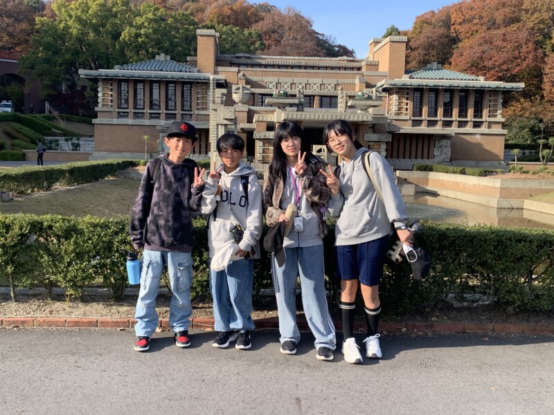 12月 01 2025 6年生 校外学習「明治村」 12月1日(月)、6年生は校外学習で明治村に行きました。12月と思えないほど暖かで爽やかな晴天の下、班行動で地図を見ながら、明治の建物を巡りました。明治時代にタイムスリップをしたかのように、歴史を学ぶことができました。