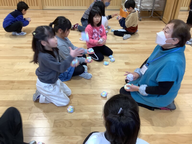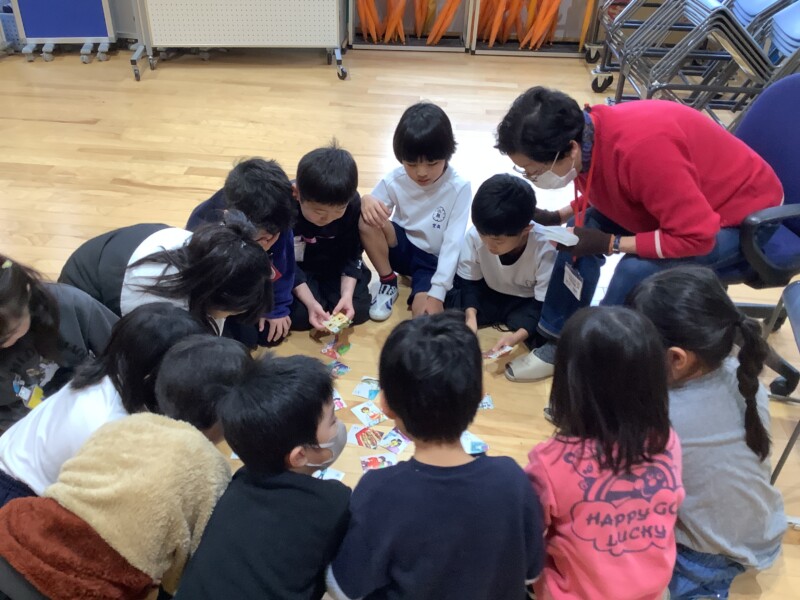 1月 08 2026 1年生活科 昔遊び 1月8日(木)、1年生は生活科の学習で、昔遊びを体験しました。お手玉、福笑い、多治見かるたなど、地域の学習支援ボランティアの方々に教えていただきました。子どもたちは、初めての体験の子も多かったですが、笑顔いっぱいで楽しんでいました。地域講師の皆さん、ありがとうございました!