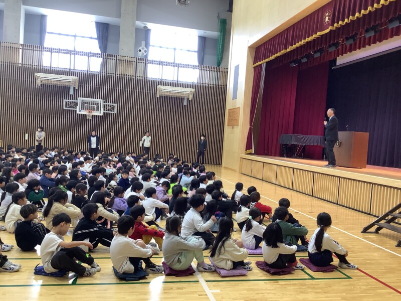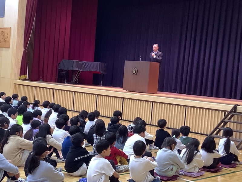 12月 26 2025 冬休み前集会 12月26日(金)、冬休み前の最終日、体育館に全校児童が集まり、集会を行いました。校長先生の話では、夏休み明けからこれまでの子どもたちの頑張りや、挨拶やぽかぽか言葉を使う児童のよさが紹介されました。スポーツや文芸などの様々な大会やコンクールでの優秀な成績を収めた児童の表彰も行いました。冬休みは、家族や親戚とのふれあいを大切にして、健康で安全に過ごしてほしいものです。よいお年をお迎えください。