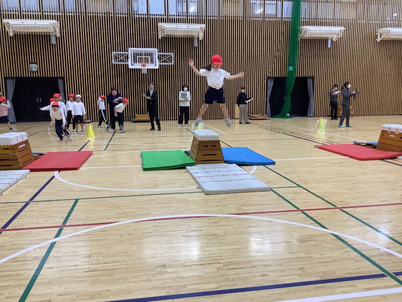 12月 19 2025 2年1組 体育科跳び箱の研究授業 12月19日(金)、2年1組が全校研究授業として、体育科跳び箱の授業を行いました。低学年は「運動遊び」という視点で、楽しくたくさんの運動をできるように、また友達のよさに目を向け、自分の跳び方を振り返れるように、工夫の詰まった授業でした。45分間の授業で、子どもたちは自分の選択した跳び方で、ほとんど休むことなくチャレンジしていました。授業後は、授業研究会を開き、活発な意見交換をし、指導主事の先生に指導を受けました。2年1組の子どもたちの日頃からの頑張りに拍手です!