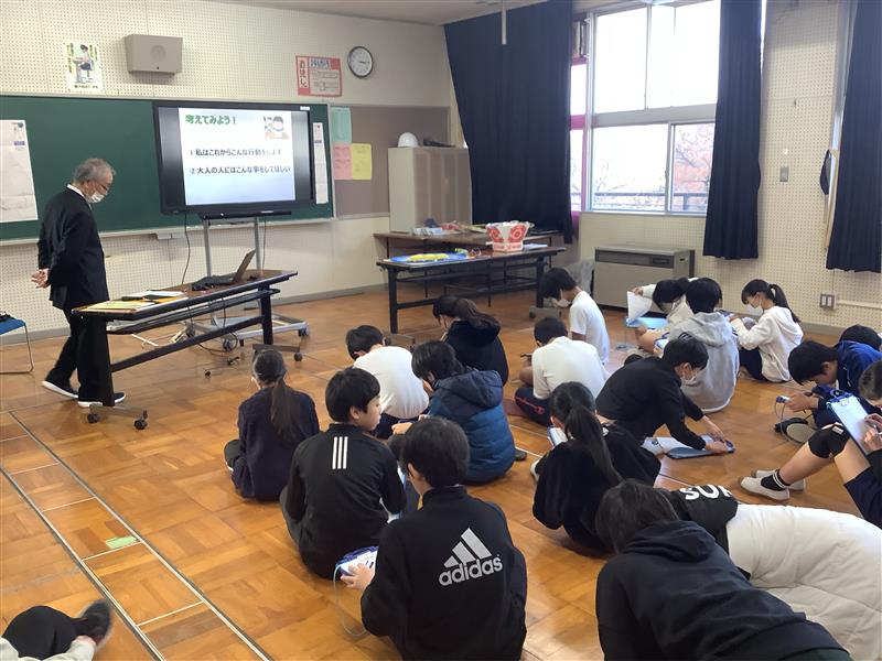 12月 23 2025 情報委員会によるお昼の放送 夏休み明けから本校にEZCastという機器を導入しました。これを使うと放送室からの映像が簡単に各教室のモニターに映し出すことができます。5・6年の情報委員会が毎日の給食のお昼の放送を担当しています。このお昼の放送では、このシステムを使って楽しい企画をいろいろと考えています。ルーレットによる星座占いやキャラクター当てクイズなどタブレットの機能を使って楽しい企画を放送しており、全校も楽しんでいます。あまりに夢中になりすぎて給食をおろそかにしないようにしたいですが、情報委員会はみんなのためによく頑張っています。