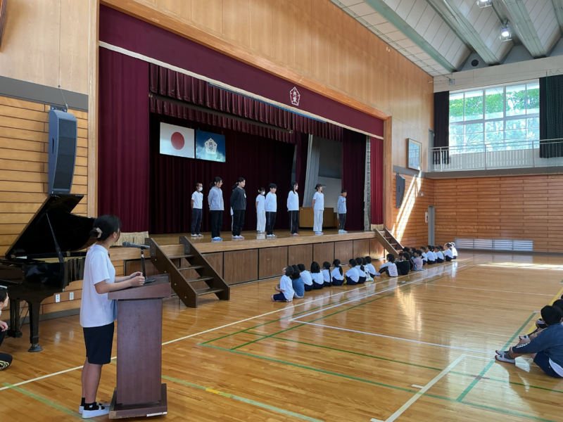 音楽室からきれいなリコーダーの音色が聞こえてきます。足を運んでみると、高温の「ド」「レ」「三」などを使った指使いの難しい曲を5年生の児童が吹いていました。
