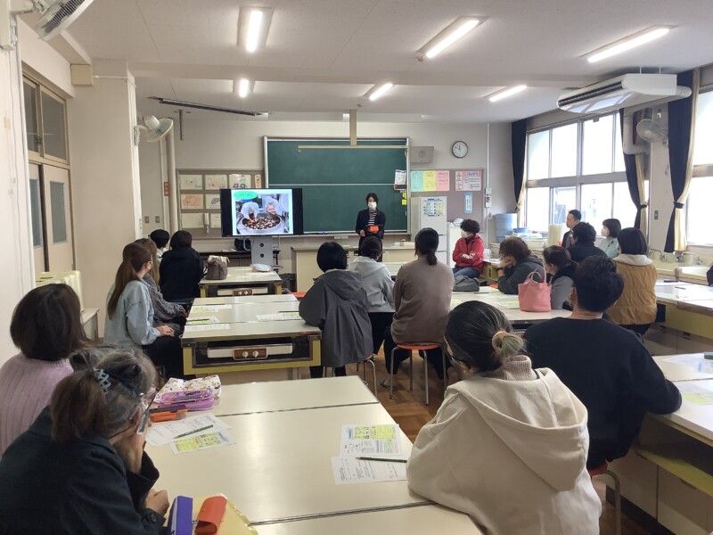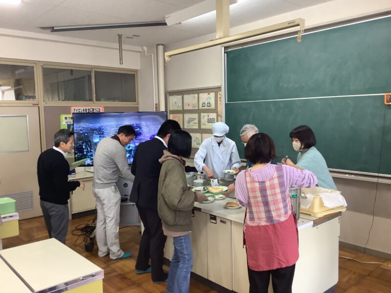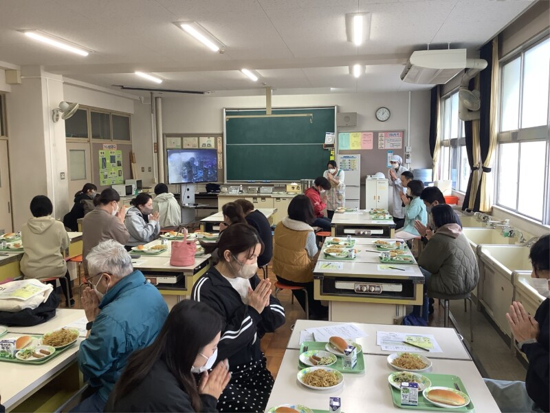PTA家庭教育学級として給食試食会を行いました。PTAだけでなく学校運営協議会の皆様にもお声掛けをしたところ家庭科室がいっぱいになるくらいの参加者でした。栄養教諭の斎藤先生から給食が作られる様子や、給食をつくるときに気を付けていることを話していただきました。今日のメニューは焼きそばとウインナーと子どもたちも大好きなメニューでした。保護者の中には「昔食べた焼きそばと同じ味でうれしかった」「これだけ手間がかかっているのなら300円程度は安いかも」といった感想もありました。子どもたちの給食の様子もみていただき、よい機会となりました。