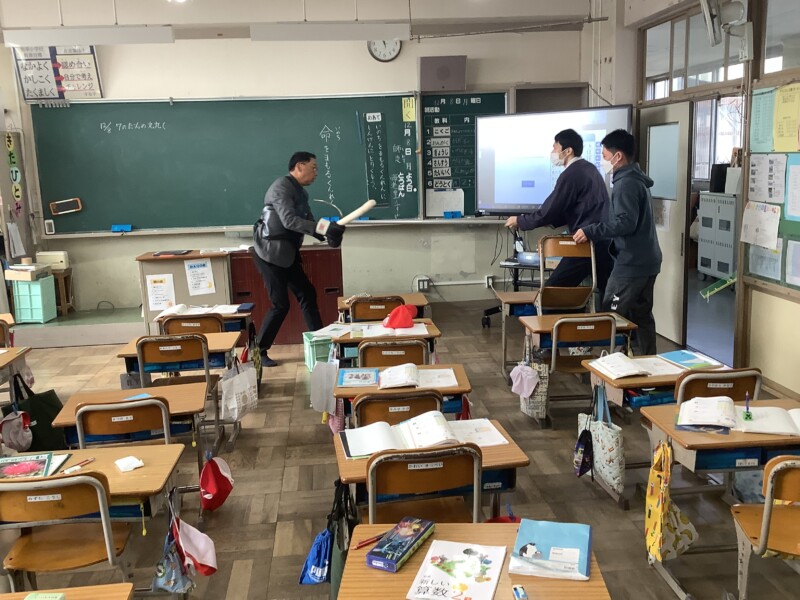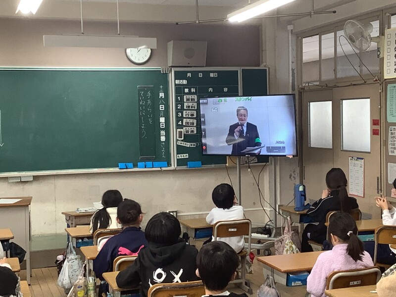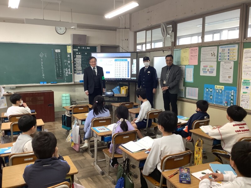 12月 08 2025 不審者対応訓練 3時間目に全校で不審者が来た時にどのように対応したらよいかについて訓練を通して学びました。本校は公園に面しているため校舎には比較的、入りやすい学校であるということも気を付けて職員、子どもたちは今日の訓練を行いました。1・2年生は不審者役の警察の方が入ってくると、速やかに先生の指示に従って動いていました。また、注意喚起の放送が流れると3年生から6年生も静かに身をひそめて静かに待機していました。職員も動きを確かめながら真剣に取り組みました。