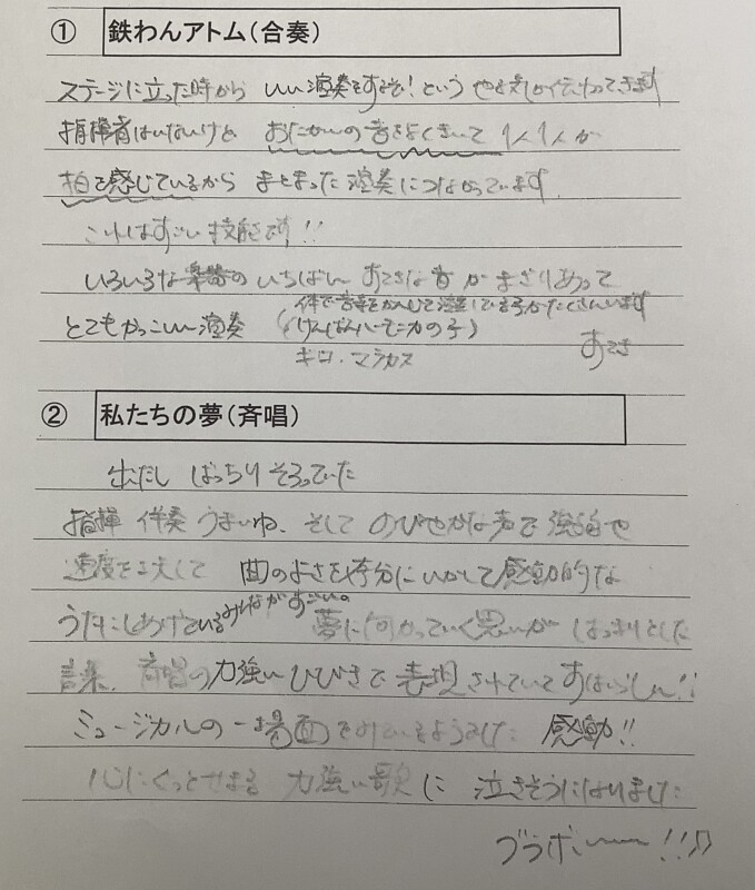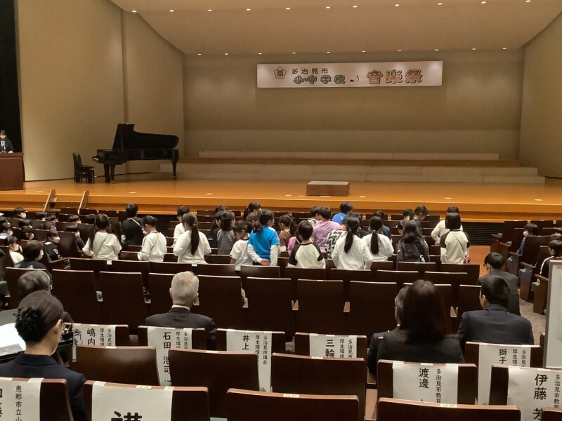 第72回を迎える多治見市小学校音楽祭がバロー文化ホールでありました。共栄小学校は午前の部に4年生が出場しました。「鉄腕アトム」の合奏と「私たちの夢」の斉唱を発表しました。今週の火曜日に全校や4年生の保護者に向けては披露をしていますが、そのときよりもさらに数段レベルアップした発表となりました。来賓の皆様も鉄腕アトムの懐かしいメロディーが流れると体を揺らしながら聴いている姿印象的でした。午前中は他にも6校の4年生の発表を聴きましたが、どれも素敵な発表で参考にできることがたくさんあり、よい刺激になりました。※指導者の先生の講評も載せておきます。
