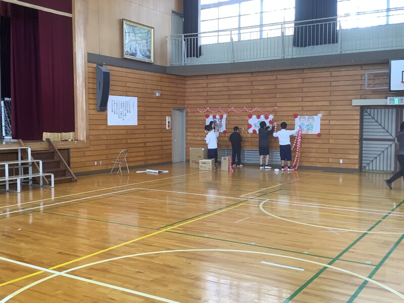 2月 26 2026 6年生を送る会に向けて2 いよいよ明日の3時間目に6年生を送る会が行われます。今日もそれぞれの教室や体育館からは呼びかけの声や歌声が響いてきました。午後からは5年生が体育館の飾りつけを協力して行っていました。また、1年生は6年生へのプレゼントを確認ししていました。これらの姿をみていると、4月からの成長を感じさせれます。欠席者もやや多いですが、休んだ子にも雰囲気が伝わるように、欠席者には動画をみられるように準備をしています。なんとか無事に行われることを願っています。