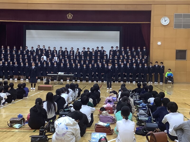 3月 13 2026 中学校半日入学(6年) 12日(木)の午後から6年生が陶都中学校へ半日入学に行きました。精華小学校の6年生の大人数と一緒でしたが、共栄小の6年生も立派な姿や返事で臨んでおり、成長を感じました。中学校についての印象を校長先生から尋ねられると、やはり不安もあるようです。しかし、生徒会が作成してくれたビデオをみたり、1年生の合唱を聞いたりしていく中で、期待もふくらんできたことと思います。いよいよ卒業式まであと7日を残すのみとなりました。