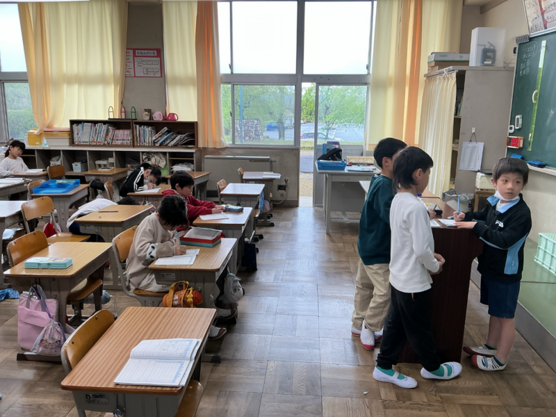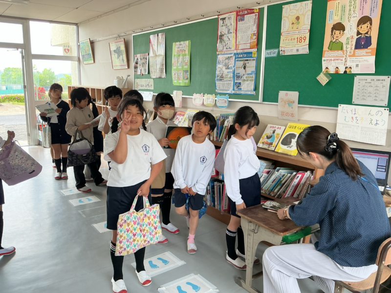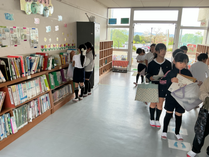 4月 21 2026 低学年図書でたくさん本を借りる2年生 子どもたちは本が大好き。 低学年図書は、1・2年生の靴箱のすぐ横にあり、本を手に取りやすい環境にあります。 ちょっとした時間にすぐに本を出して読む児童は、本の世界に入って、お話を楽しんだり知識を増やしたり語彙を増やしたりすることを自然に身に付けていきます。また、誰かに読んでもらうことで、物語の世界がもっと広がります。どんどん本に親しむ2年生の素敵な姿です。また、本を借りたらさっと、明日の予定を書きます。