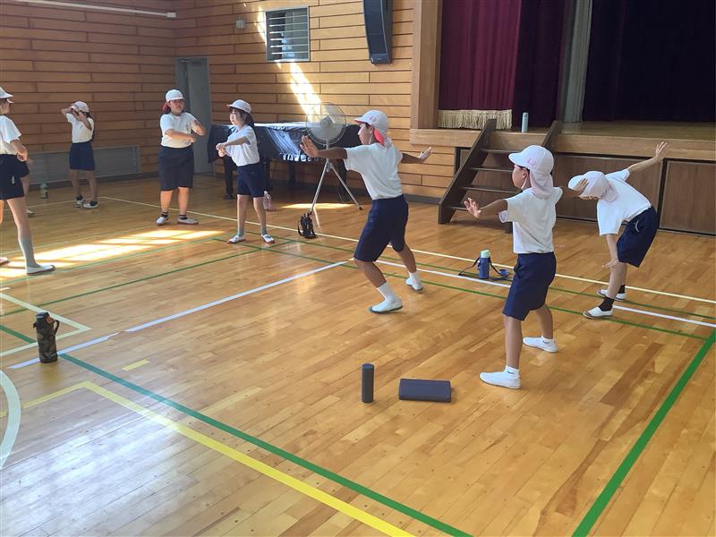 9月 22 2025 運動会練習での協働の姿(中・高学年) 3・4年生は共栄フラッグ、5・6年生は共栄ソーランに向けての取組がいよいよ本格的に始まっています。この取組に入る前に4年生と6年生は、それぞれの上級学年として3年生や5年生に教えることができるよう練習をしてきました。体育の時間の取組では、全体で振り付けを覚えるだけでなく、それぞれ4年生、6年生が中心となって、ペアやグループで高めていこうとする姿がみられます。お互いに認め合う場が生まれる協働の取組となっています。