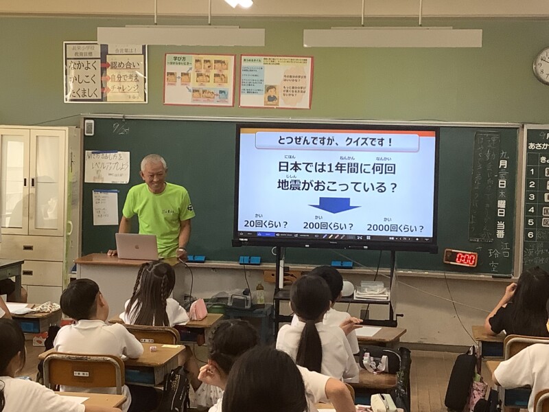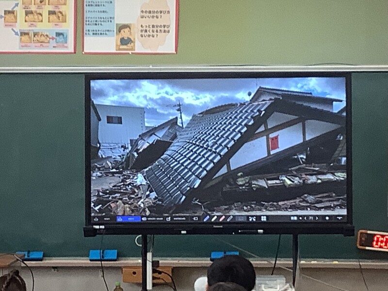 9月 25 2025 保険会社の方による防災学習(4年生) 3時間目に4年生では保険会社の方に来ていただき防災の授業を行いました。「保険会社の方がなぜ防災?」と思いましたが、保険会社の方は、仕事の関係で被災地へ出向き被害の状況を確認することがしばしばあるそうです。それだけに地震や津波の恐ろしさを身をもって感じてみえます。被災の経験がない私たちにはできない貴重な話をいくつもしていただきました。子どもたちも興味をもって講師の方の問いかけに意欲的に応え、とても有意義な学習をすることができました。