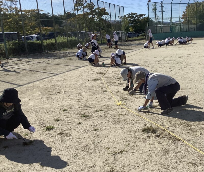 9月 26 2025 草取りボランティアありがとうございました! 本日の朝活動では2回目の全校での草取りを行いました。朝一番に運動場に出てみるとすでに朝礼台周りに誰かがとっていただいた草が山になっていました。きっと空いている時間に来ていただいたのだと思います。また、今回の草取りでは前回以上に多くの方々にお手伝いいただきました。特に保護者の皆様に多くきていただきました。ご自分のお子さんの近くで一緒に草取りをしていただく方もみえました。子どもたちだけでなく、学校だけでなく、地域ぐるみで子どもたちを支えていこうという思いに感謝いたします。