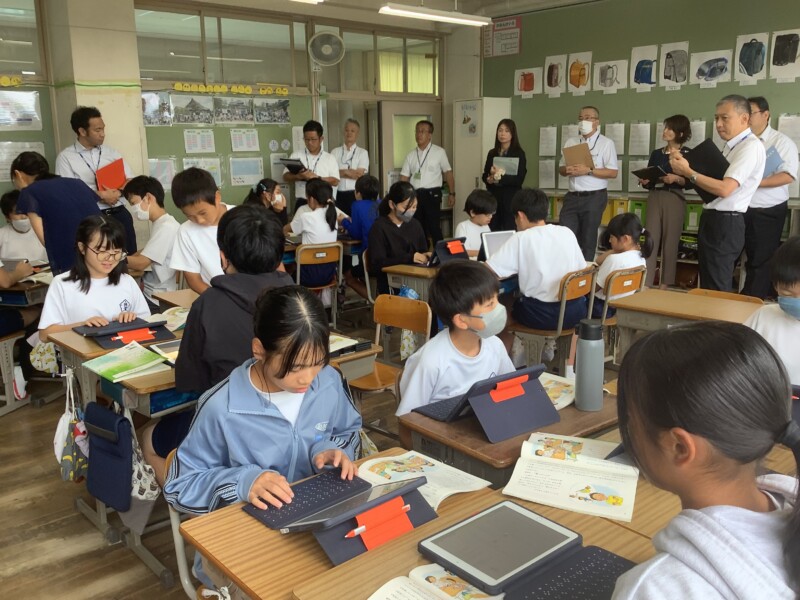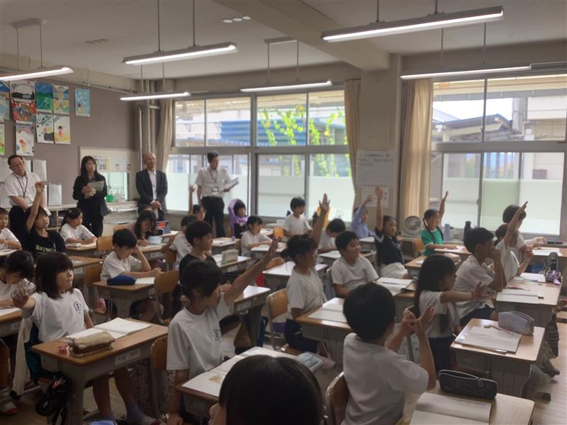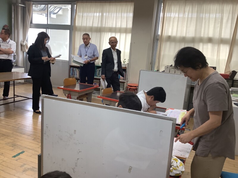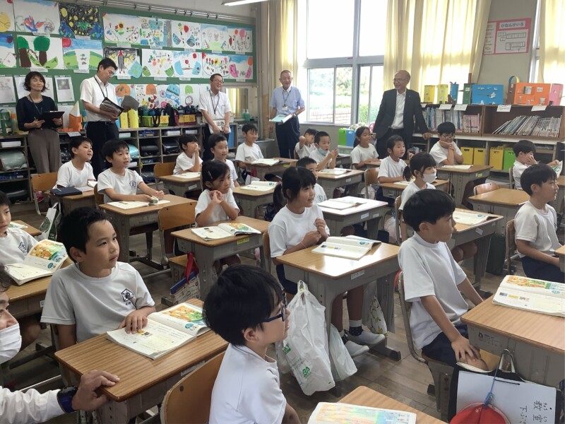 10月 01 2025 多治見市教育長訪問 東濃教育事務所や多治見市教育委員会から20名近くのお客様が共栄小学校の様子を見にみえました。全学級の授業の様子を5分程度ではありますが参観をされました。子どもたちと先生との距離感が近くて、どの学級も生き生きとした姿があったことや本校が進めている「自分で学び方を考える」自己調整学習のあり方について等、いろんな点を褒めていただきました。共栄小学校の子どもたちの素直で明るい姿がいっぱいあらわれた訪問となりました。