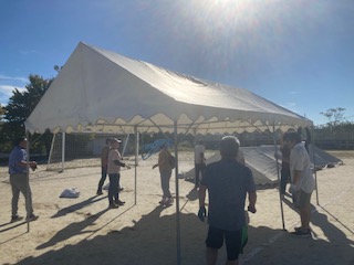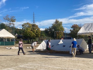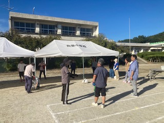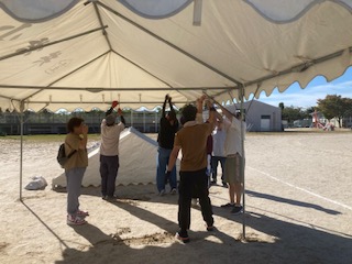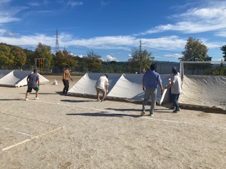 10月 06 2025 運動会のテント設営 18日の運動会に向けて団席のテントを子どもたちが帰った後に張りました。10月とはいえまだまだ30度を越える日があります。当日もまだまだ暑くなるかもしれません。全員がテントの下に入れるように全部で8つのテントをたてました。PTA本部役員や学校運営協議会の皆様にも多くお手伝いにきていただき1時間もかからずに完成することができました。台風22号の進路も少し気になりますが、これで全校での練習もできます。お手伝いしていただいた皆さんありがとうございました。