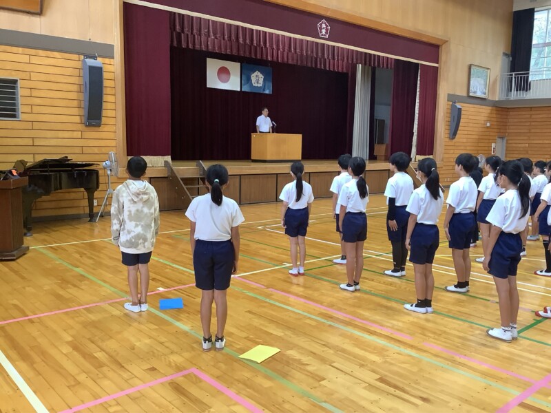 三連休もあっという間に終わり、今日から後期が始まりました。早速、朝活動から1時間目にかけて後期の始業式を行いました。後期のスタートも、6年生がお手本となり、全学年が静かに入場し、全員の集合を待つことができました。校長からは3つの合言葉について問いかけがありました。「認め合い」「自分で考え」「チャレンジする」の3つの合言葉が子どもたちにも浸透していることがわかりました。児童代表の二人の話も、後期に向けての意気込みが感じられる立派な話でした。終業式の後は、後期委員会の委員長の任命式もあり、委員長から後期への意気込みが語られました。いよいよ共栄小の後期が本格的にスタートしました。