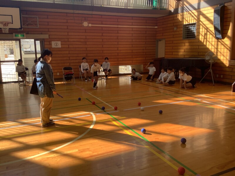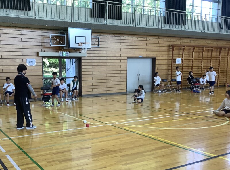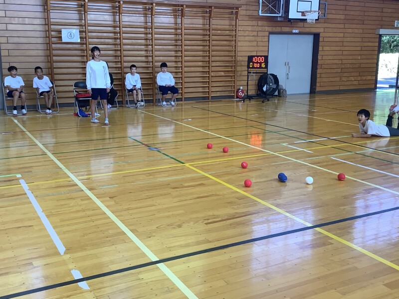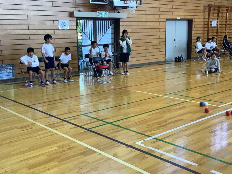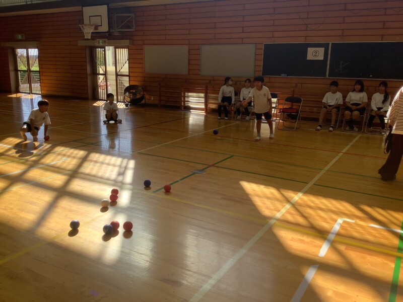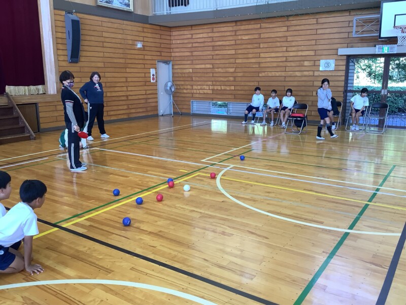 10月 24 2025 ボッチャ講習会(5年生) 23日(木)の5時間目に多治見市の社会福祉協議会の方に来ていただきボッチャという軽スポーツの講習を受けました。近年、氷上で行うカーリングのようなルールで白いボールに自分たちの色のボールをできるだけ近づけるゲームを2つのチームで対戦していきます。11月4日に共栄地区のサロンの高齢者の方や民生委員さんと5年生がボッチャで交流をします。そのためのルールを覚える授業でしたが、早速、多くの児童が夢中になってボールを投げたり、声援を送ったりしていました。交流会当日はさらに盛り上がることを期待しています。