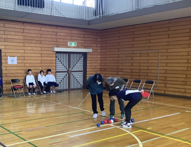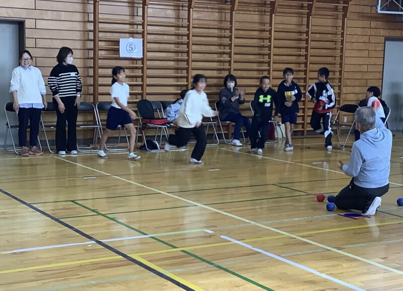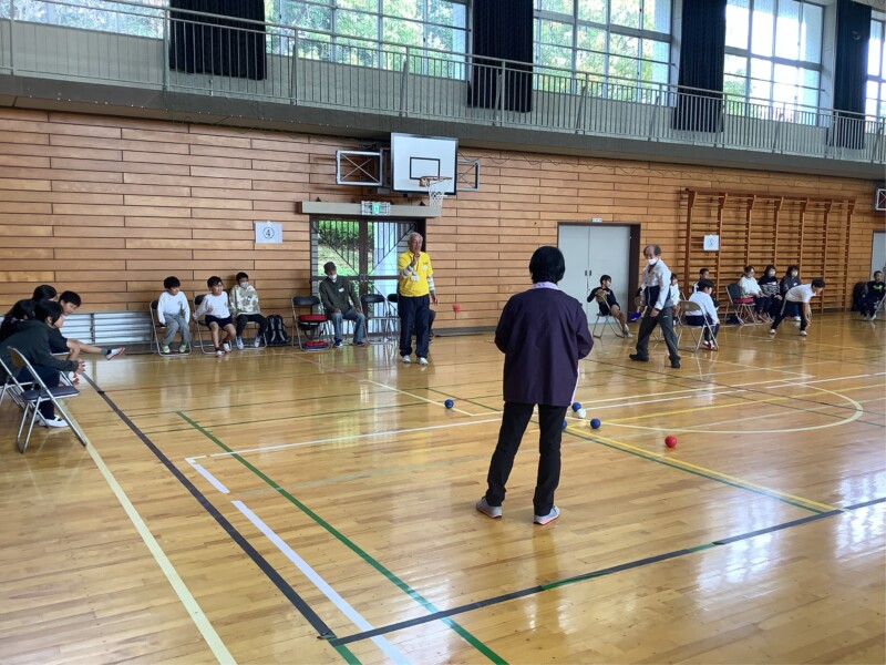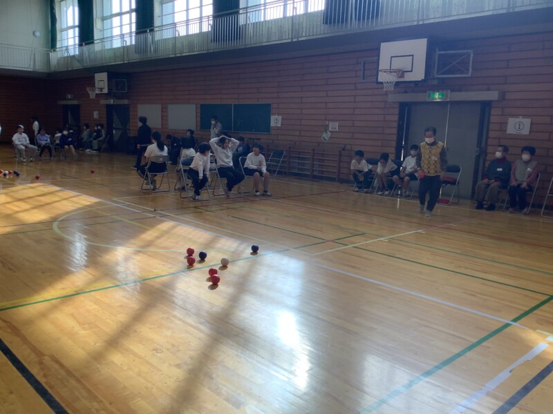 11月 05 2025 ボッチャ交流会(5年生) 5年生では総合的な学習の時間で福祉について広く学んでいます。高齢の方との関わり方を学ぶ機会として、共栄校区のサロンの方々とボッチャというスポーツで交流をしました。ボッチャとは氷上のカーリングに似た競技で、どの年代でもできるスポーツです。5年生の子どもたちも、地域の方々も、勝ち負けにこだわりながらも楽しく、笑顔で時間を共有してる姿が印象的でした。今後、5年生の子どもたちは様々な人たちと関わり方をさらに学んでいきます。