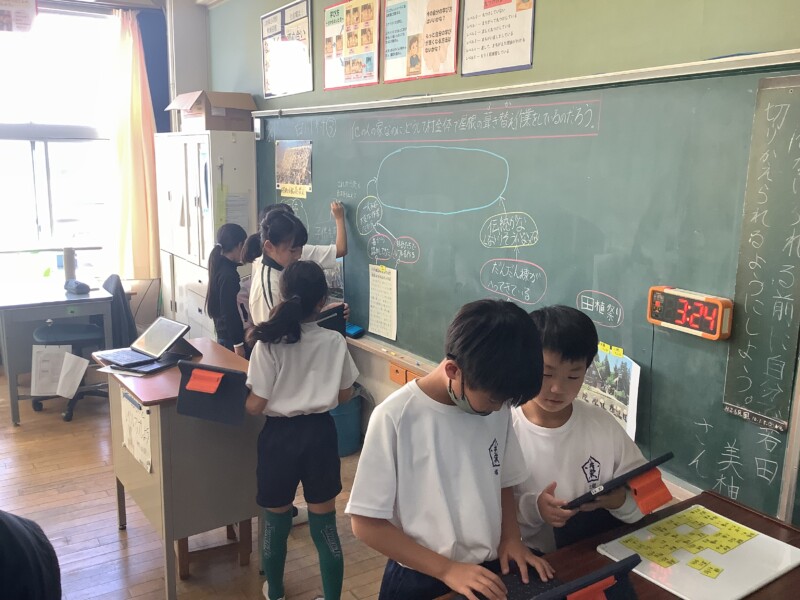 11月 06 2025 「自分で考える」力をつける授業 本校の合言葉「自分で考え」を実現するために、全校的に自分で学び方を考え課題に向けて取り組む自己調整学習に取り組んでいます。先生が教える時間はできるだけ減らし、「自分の力でやってみよう」「仲間と相談しながらやってみよう」「先生に聞いてみよう」と子どもたちが取り組む時間をできるだけ多くとるようにしています。こうした学習を効果的に進めるためにはタブレットが欠かせません。来週は1年生で研究授業があります。「自分で考える」力がつけるよう子どもたちも先生もがんばっていきます。