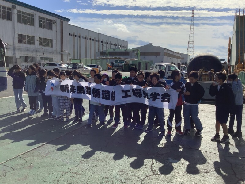 11月 18 2025 校外学習(5年生) 5年生は豊橋市の新来島豊橋造船所というところへ社会科の学習として見学に行ってきました。自動車工場は5年生でよく見学に行きますが、今年は日本が作った自動車を運搬する船を作っている工場の見学に行きました。日本の海外貿易の99.6%は船によるものです。そんな造船業のスケールの大きさを実際に自分の目でみることができた貴重な社会科の学習となりました。海のない多治見市から、海に面した工場を見学したり、下敷きや鉛筆などのお土産ももらったりして、日常からかけはなれた学習ができました。