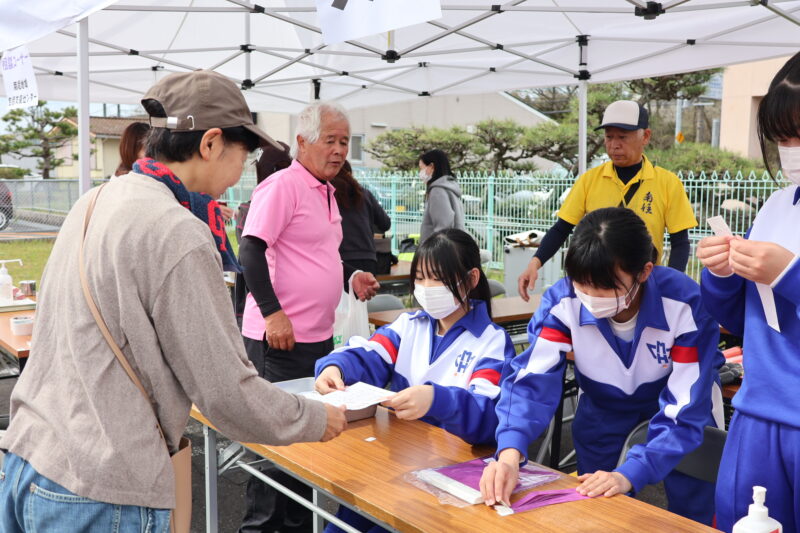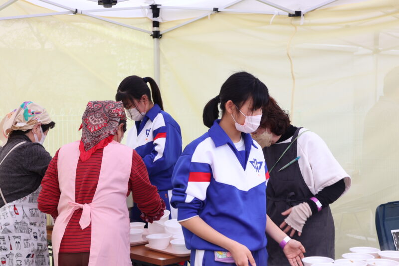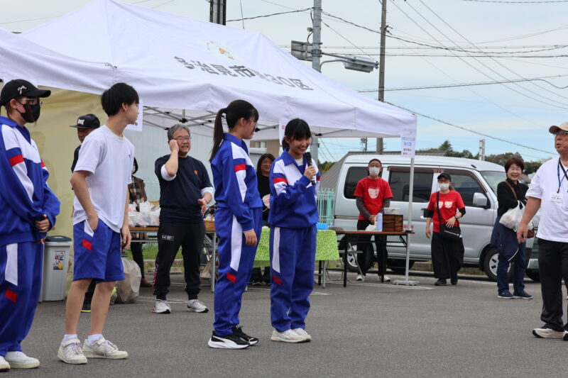 地域の方が、生徒たちをとても頼りにしてくださり、先導や受付、豚汁配りなど役割を任せてくださいました。生徒たちはその好意を意気に感じて、張り切って役割を果たしていました。
