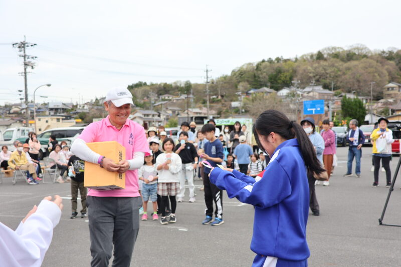 最後に、抽選があり、ご厚意で生徒たちも番号を引く係をさせていただきました。その中で、3年生の伴さんが、なんと自分の番号を引く!というミラクルが起こりました。