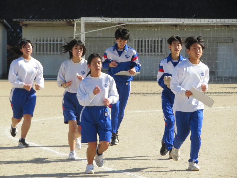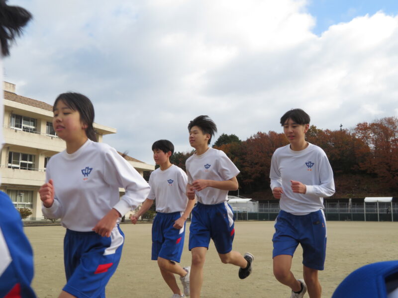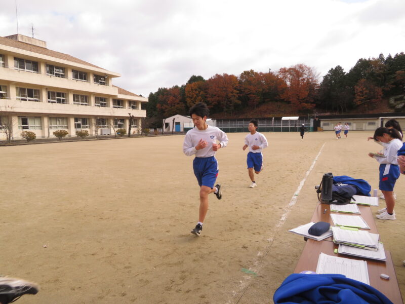 12月 10 2025 持久走 体育のダンス学習の後は、持久走。 どの学年の生徒も2kmの距離を自分のペースで走り切ろうと取り組んでいます。 体育科の伊東先生は、いつも走りながら生徒たちの後押ししをしています。 そして、ここには映っていませんが、永田教頭先生や村瀬先生、川合先生、吉村先生、有里先生、桒原先生、上田先生、丸山先生、校長先生も生徒と共に走っていました。 南姫のみんながの頑張る姿が、先生方を動かしてる~。