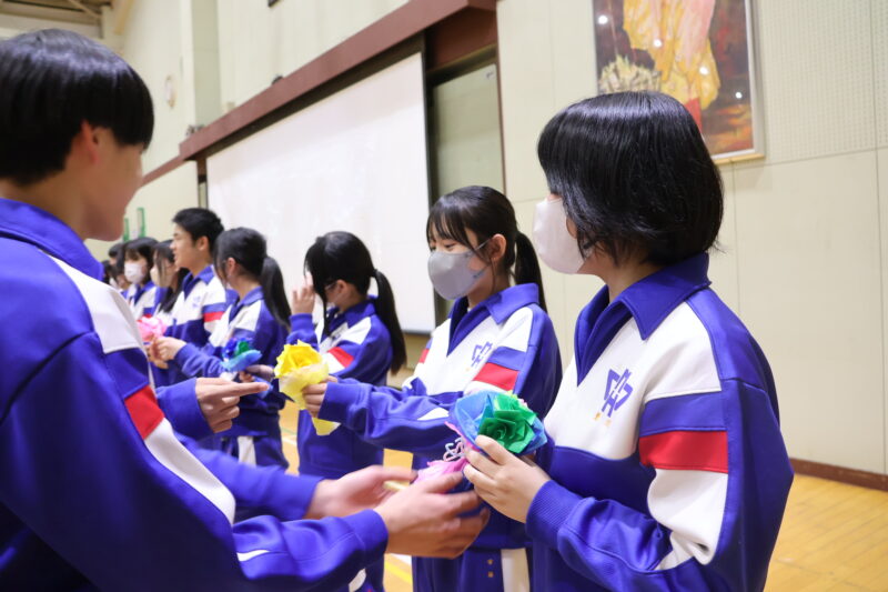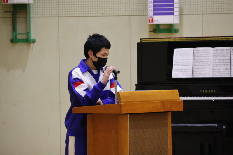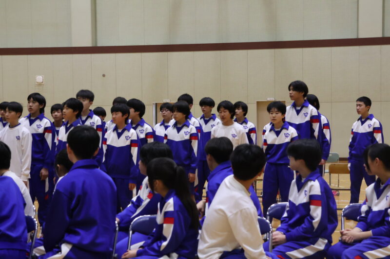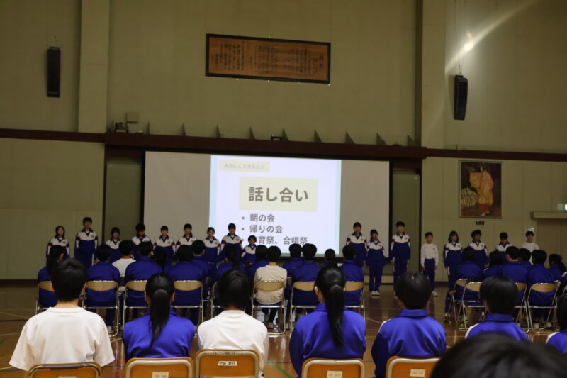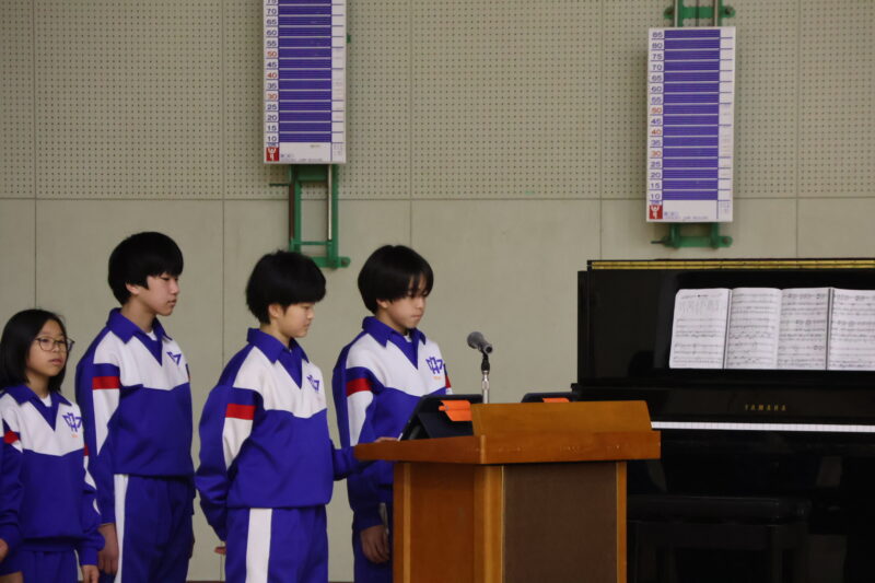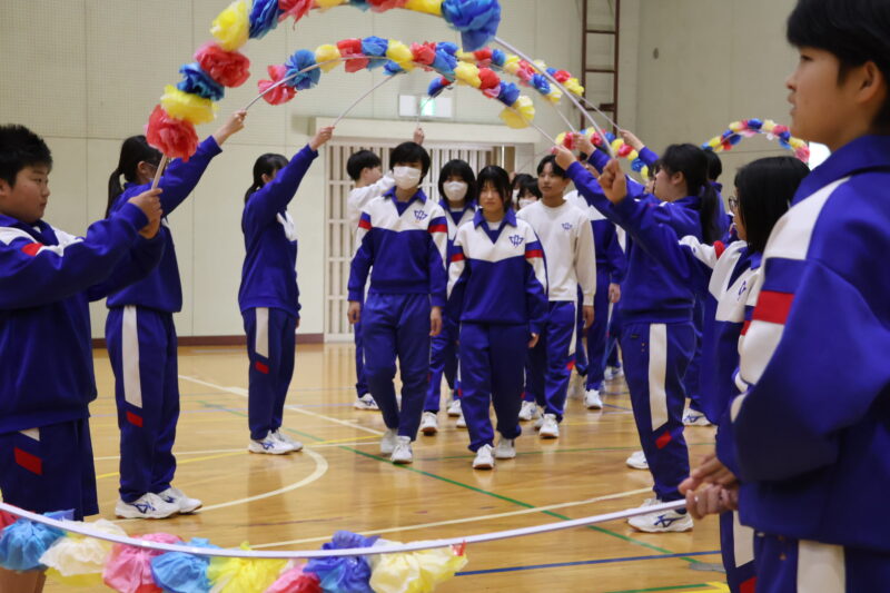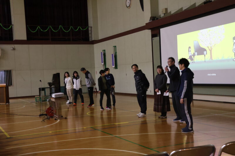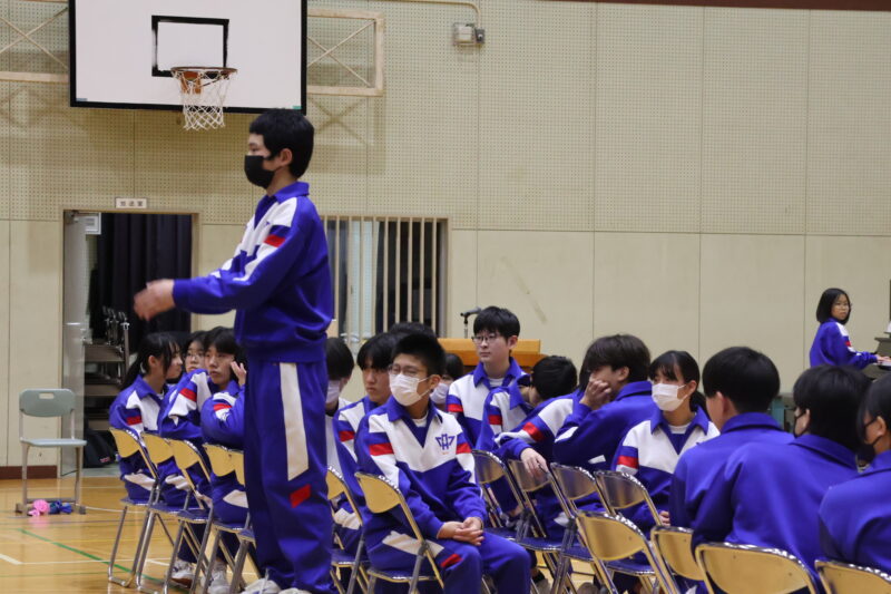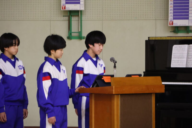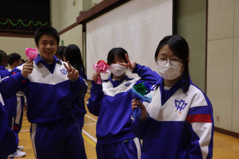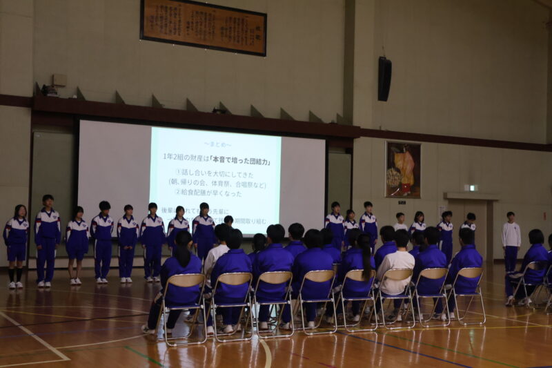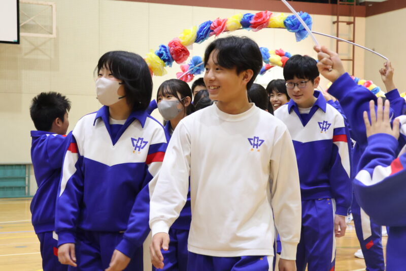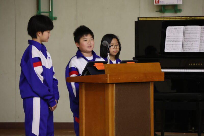 2月 27 2026 感謝の会 2月26日(木)、2年生が企画した感謝の会を行いました。 3年生入場。 最初に、1・2年生の各学級の財産発表がありました。 3年生クイズ。 1・2年生の合唱。 プレゼント渡し。 校長先生の話(先生方のサプライズプレゼント)。 とっても温かい感謝の会になりました。 これも3年生がこの一年で築いたものが、ちゃんと1・2年生に伝わっている証拠だね。 1・2年生のみんな、準備から当日まで、ありがとうね。