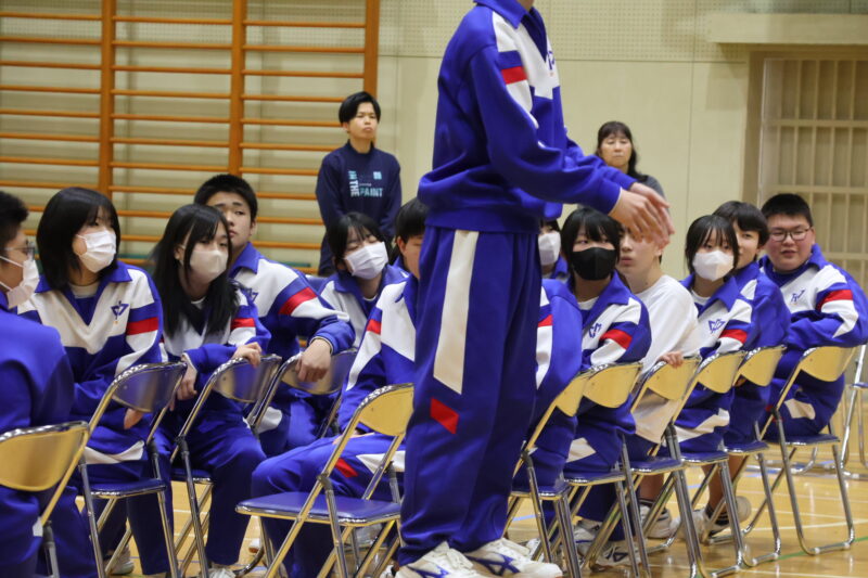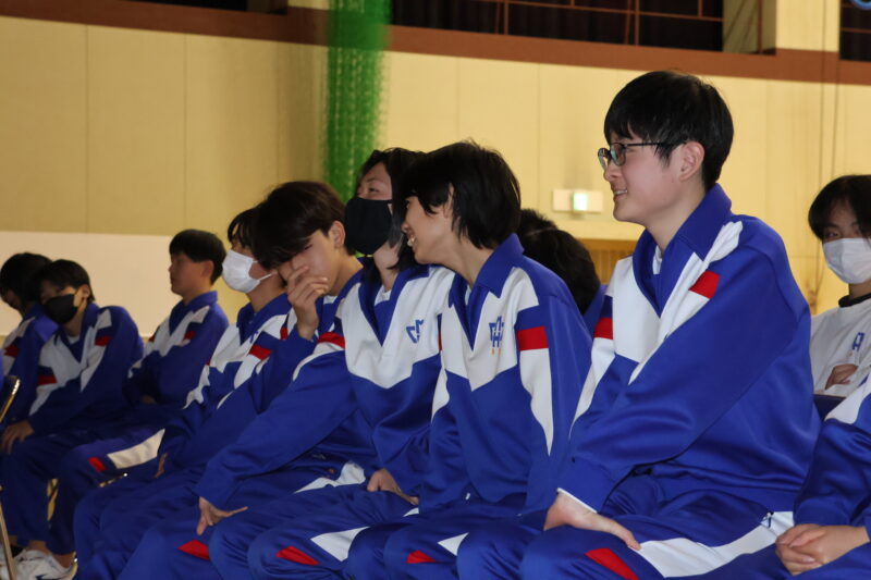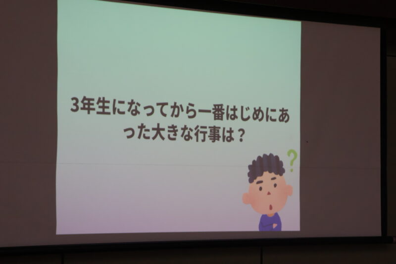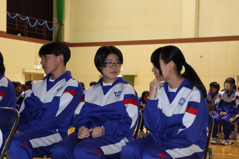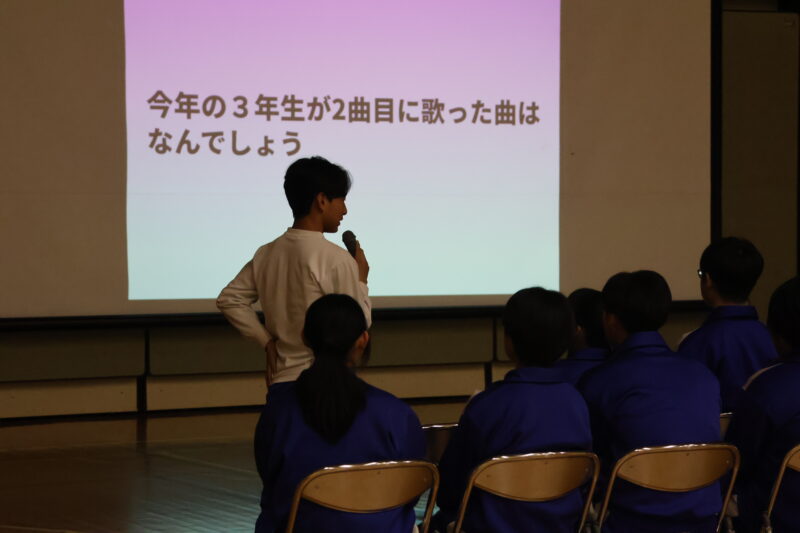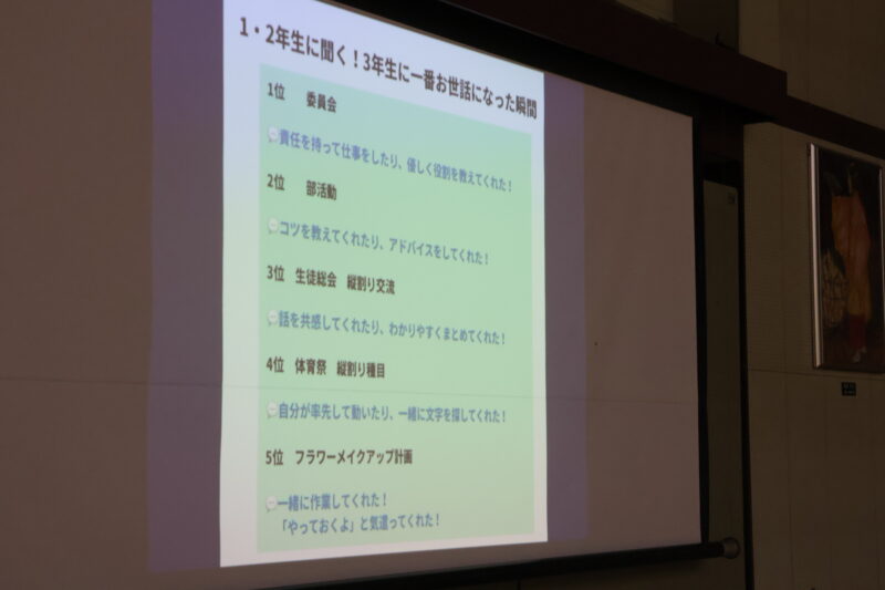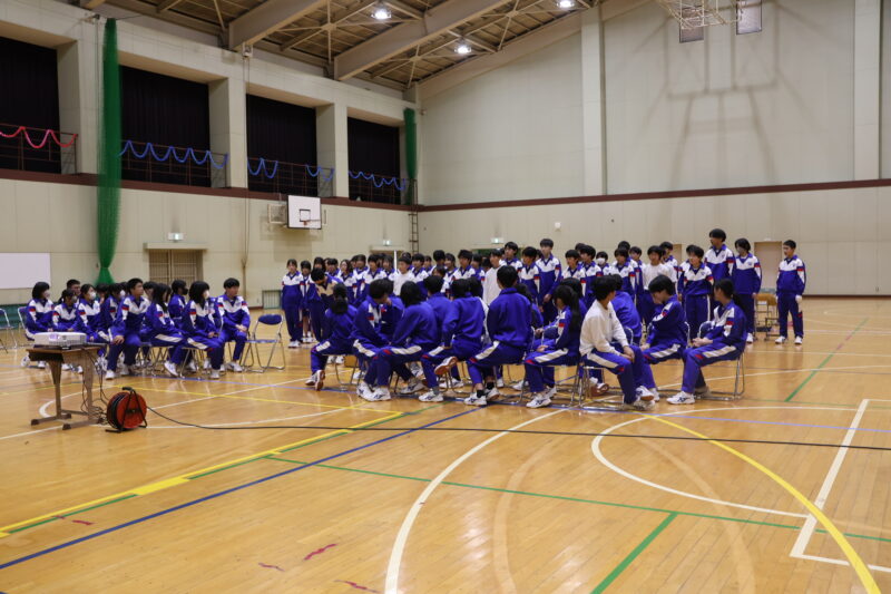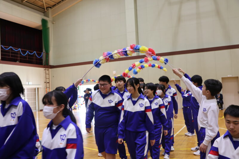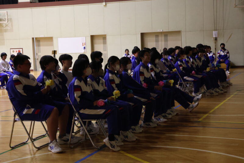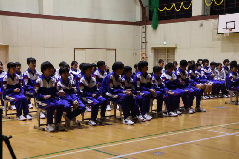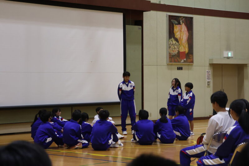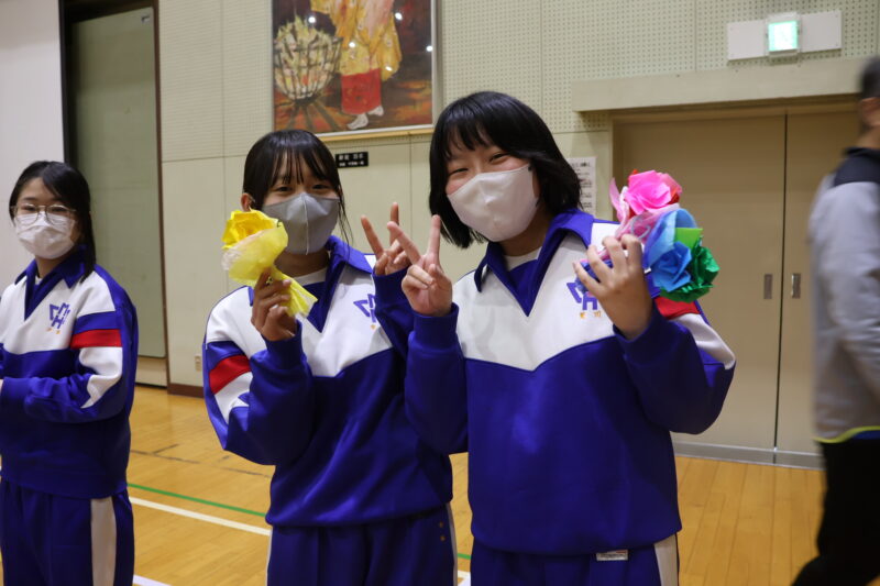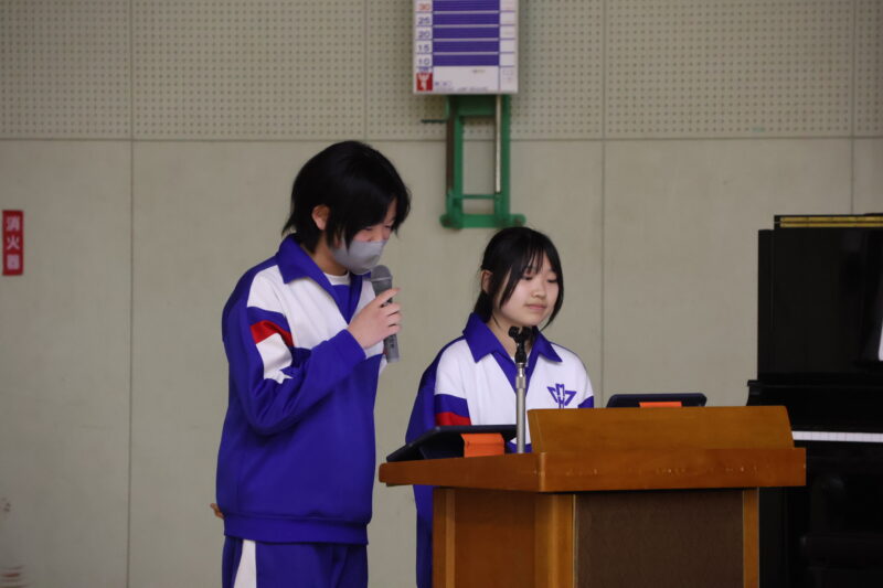 2月 27 2026 感謝の会 2月26日(木)、2年生が企画した感謝の会を行いました。 3年生入場。 最初に、1・2年生の各学級の財産発表がありました。 3年生クイズ。 1・2年生の合唱。 プレゼント渡し。 校長先生の話(先生方のサプライズプレゼント)。 とっても温かい感謝の会になりました。 これも3年生がこの一年で築いたものが、ちゃんと1・2年生に伝わっている証拠だね。 1・2年生のみんな、準備から当日まで、ありがとうね。