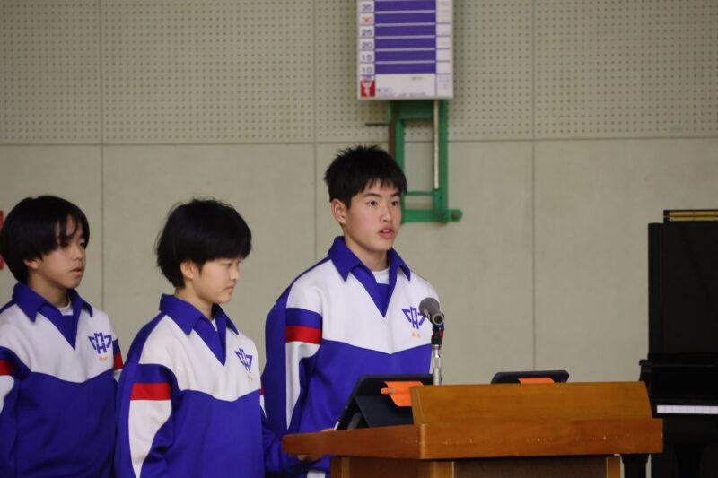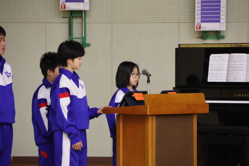 3月 06 2026 卒業証書授与式 3月6日(金)、卒業証書授与式を挙行しました。 担任の先生を先頭に入場。 卒業証書授与。 校長式辞。 お別れの言葉。 厳粛な中に温かさのある卒業証書授与式でした。 35名の卒業生の君、卒業おめでとう!