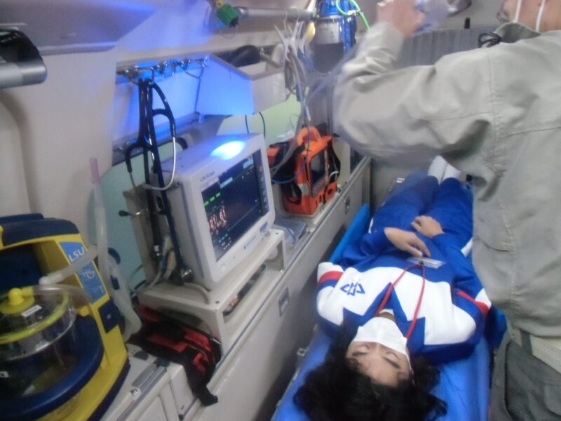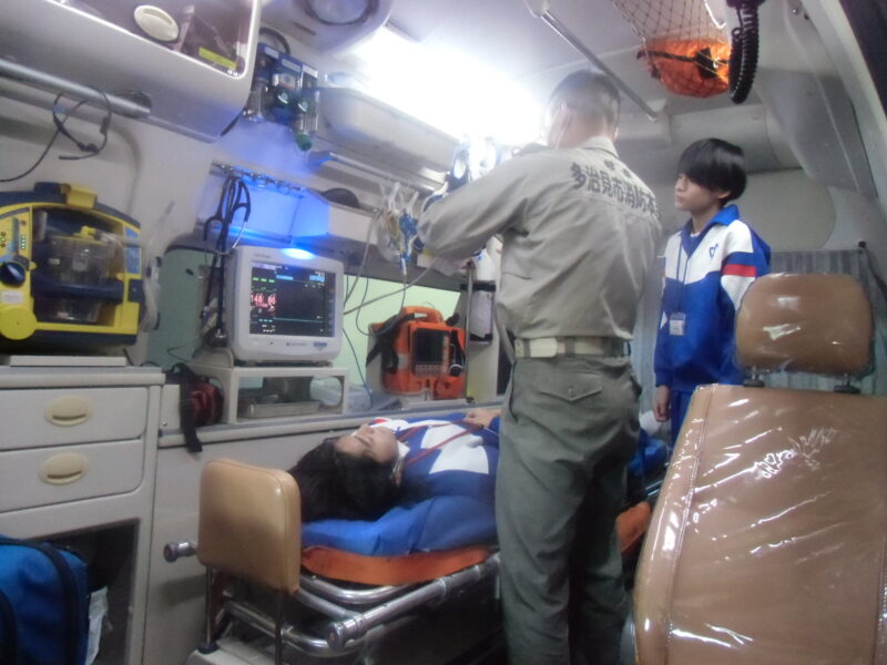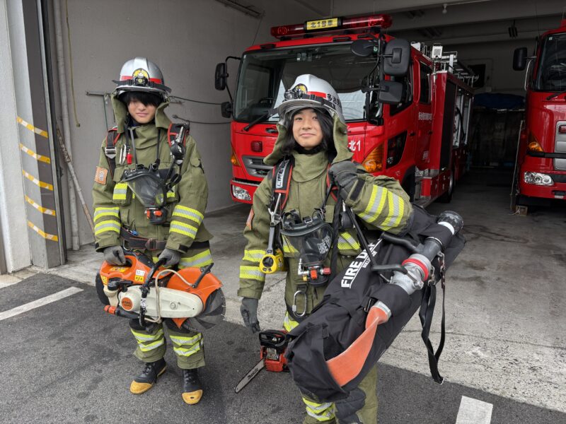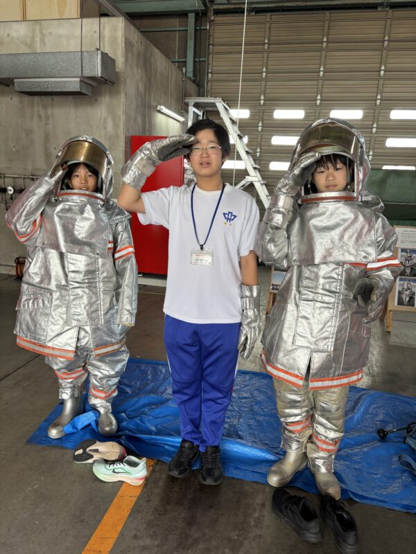 救急車の機能を教えていただいたり、防火衣を着たりする体験をしました。