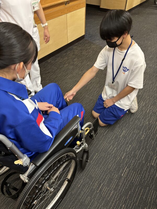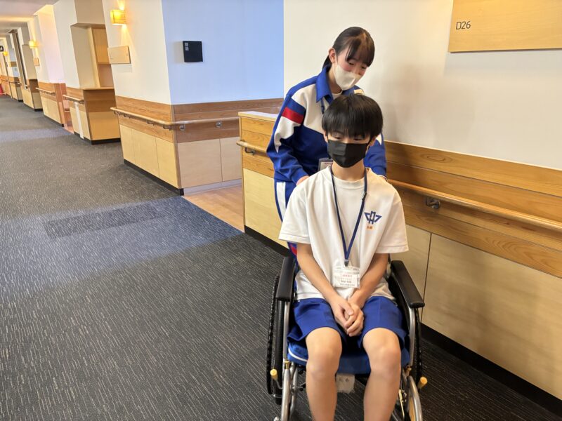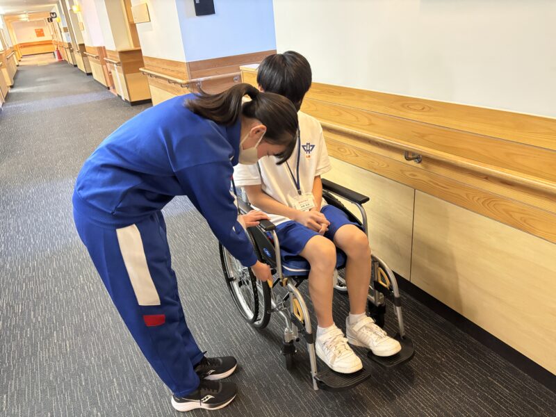 病院についてのお話を聞いたり、車いす体験をしたりする体験をしました。