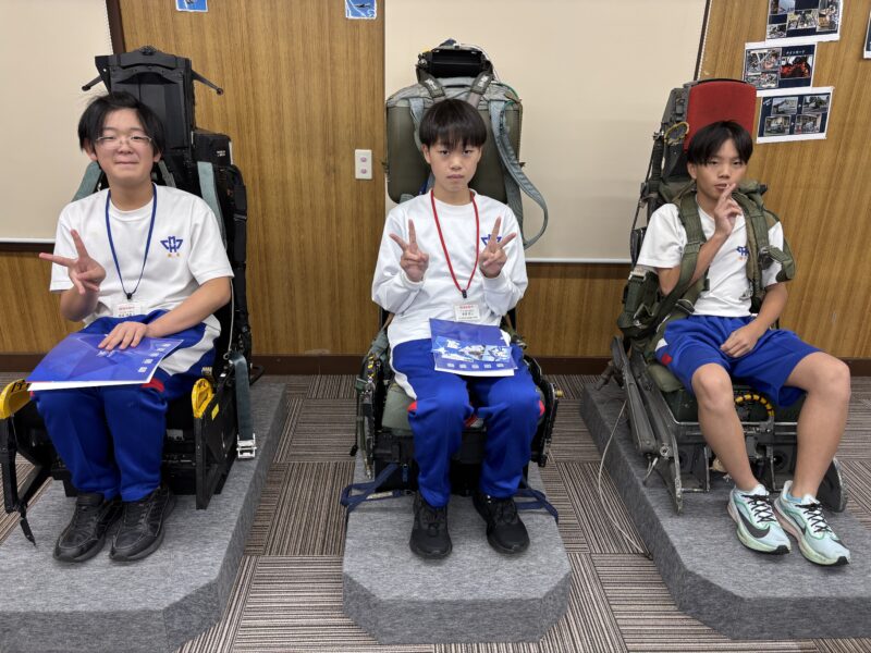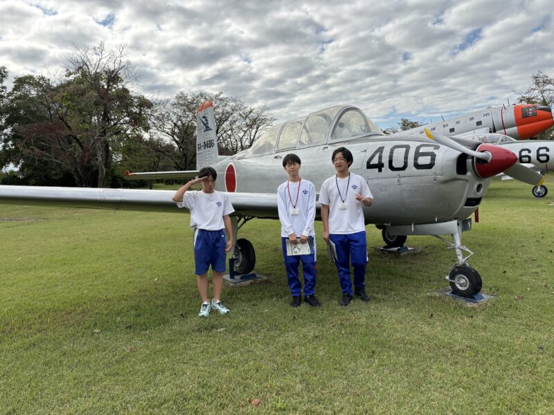 自衛隊の基地の見学をしたり、実際に身に着ける服を着たりする体験をしました。