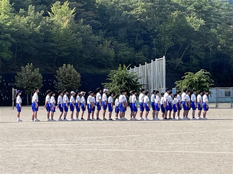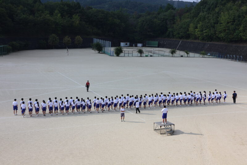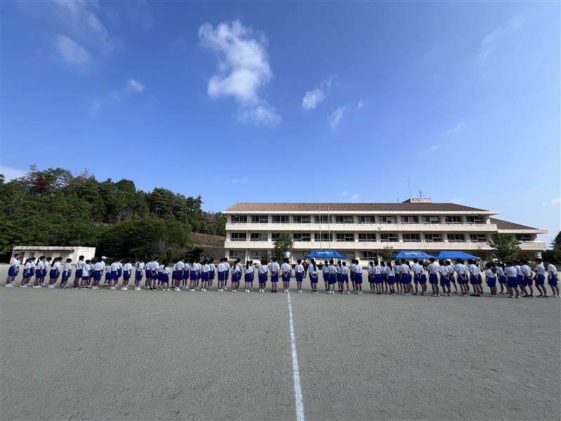 9月 19 2025 体育祭練習 ~全校集団行動~ 9月18日(木)、朝活動は、体育祭の全校集団行動の練習をしました。 今年の体育祭では、体育で学習した集団行動を、全校で挑戦します。 どこまでそろうか。 100人の学校だからできる全校集団行動。 保護者・地域の皆さん、ぜひ当日、この挑戦をご覧ください。皆さんには、校舎の3Fベランダから見ていただく予定です。