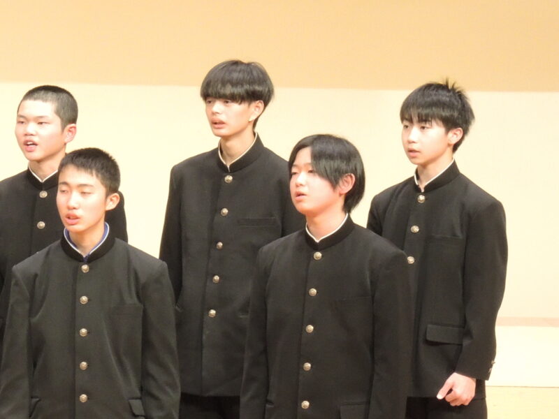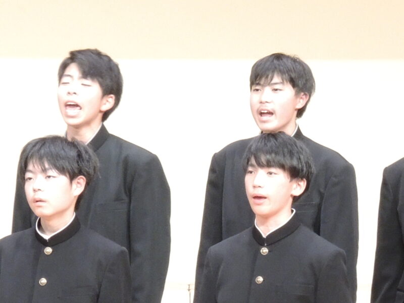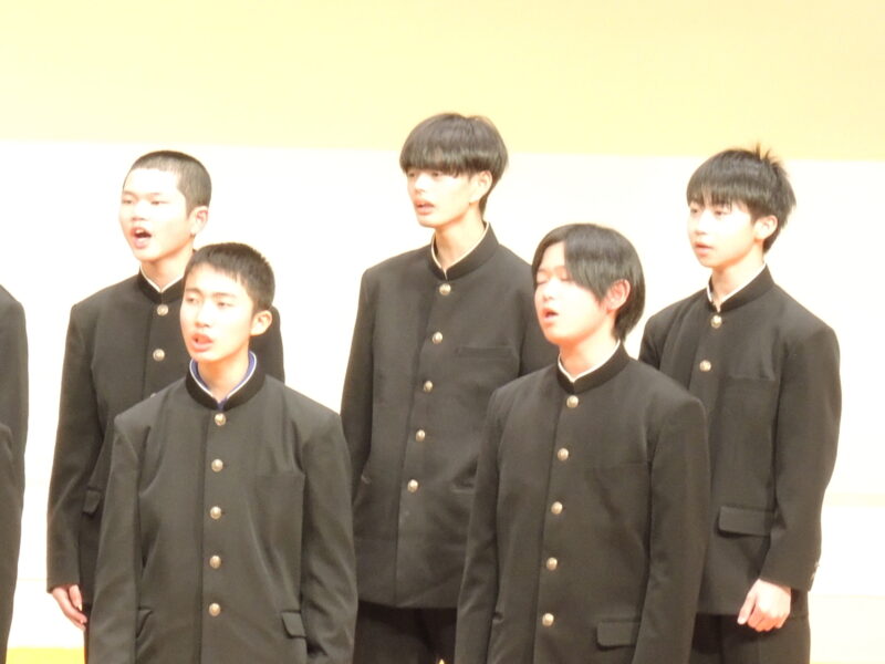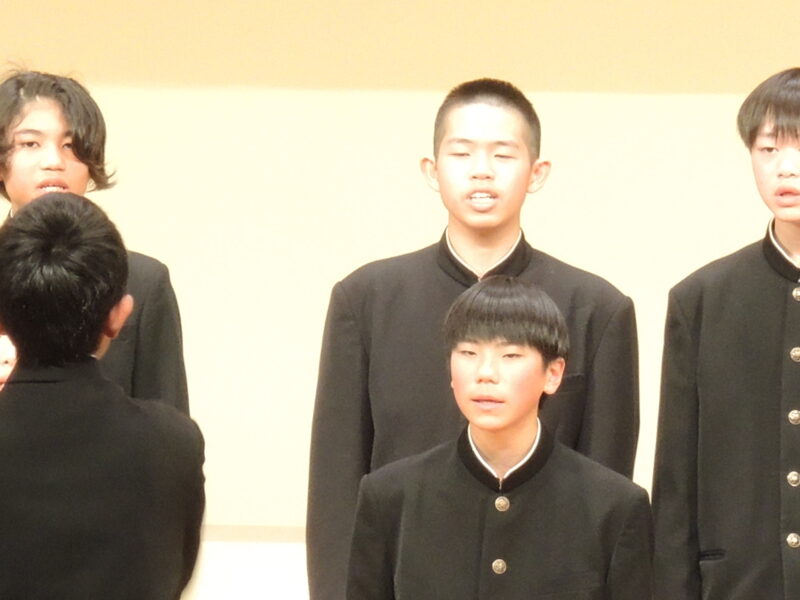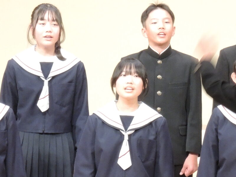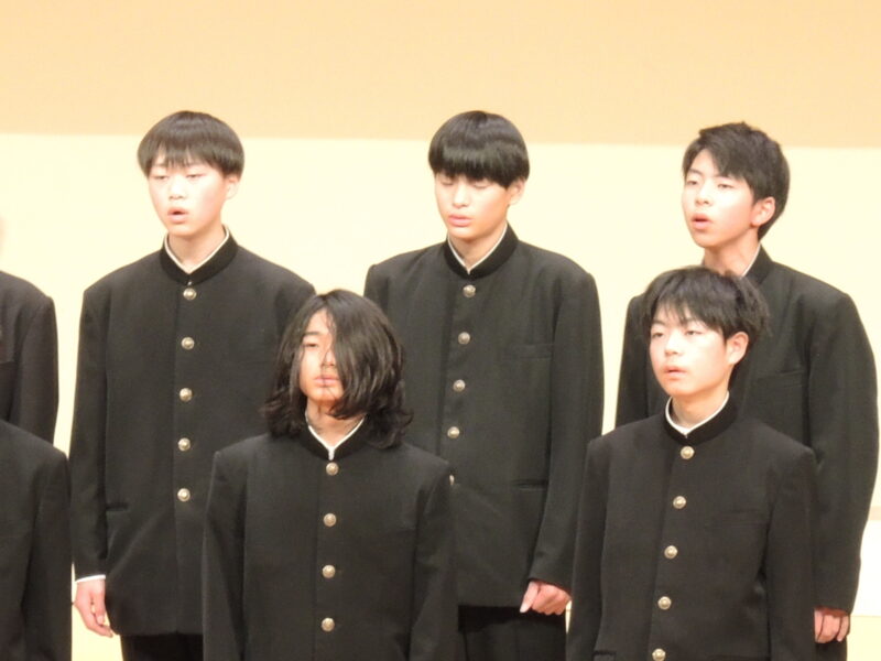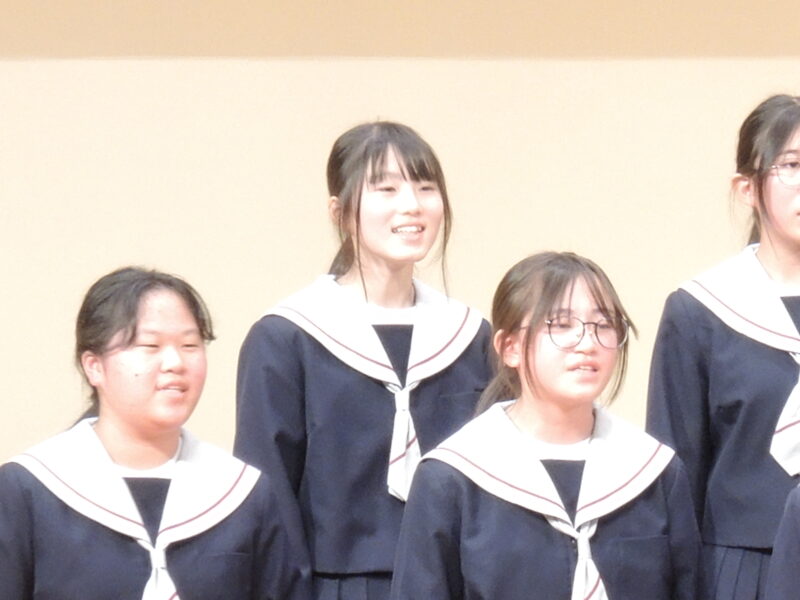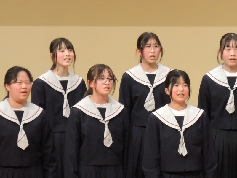 12月 11 2025 多治見市音楽祭 12月10日(水)、2年生が多治見市音楽祭に参加しました。 南姫中は、市内で一番生徒数が少ないため、トップバッター。 生徒たちは緊張していたようですが、名前が呼ばれると、会場に響き渡るはきはきとした声で返事をし、登壇しました。 人数が少ないことを感じさせないくらい、一人一人が声を出し、素敵な歌声が会場内に響き渡ってました。 講師の先生や多くの先生方から、「とてもよく声が出ていた。」とお褒めの言葉をたくさんいただきました。 2年生のみんな、かっこよかったよ!