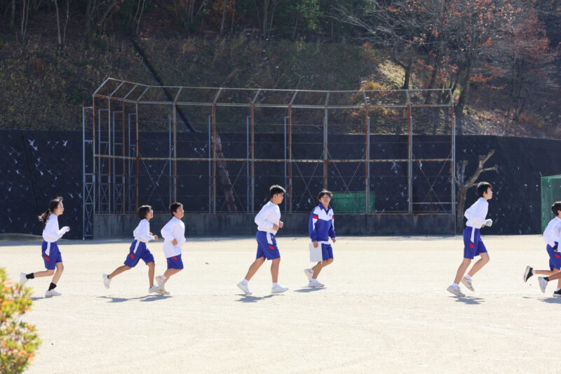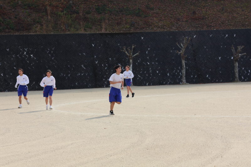 12月 10 2025 持久走 体育のダンス学習の後は、持久走。 どの学年の生徒も2kmの距離を自分のペースで走り切ろうと取り組んでいます。 体育科の伊東先生は、いつも走りながら生徒たちの後押ししをしています。 そして、ここには映っていませんが、永田教頭先生や村瀬先生、川合先生、吉村先生、有里先生、桒原先生、上田先生、校長先生も生徒と共に走っていました。 南姫のみんながの頑張る姿が、先生方を動かしてる~。