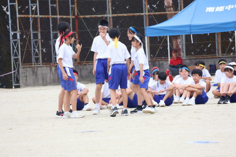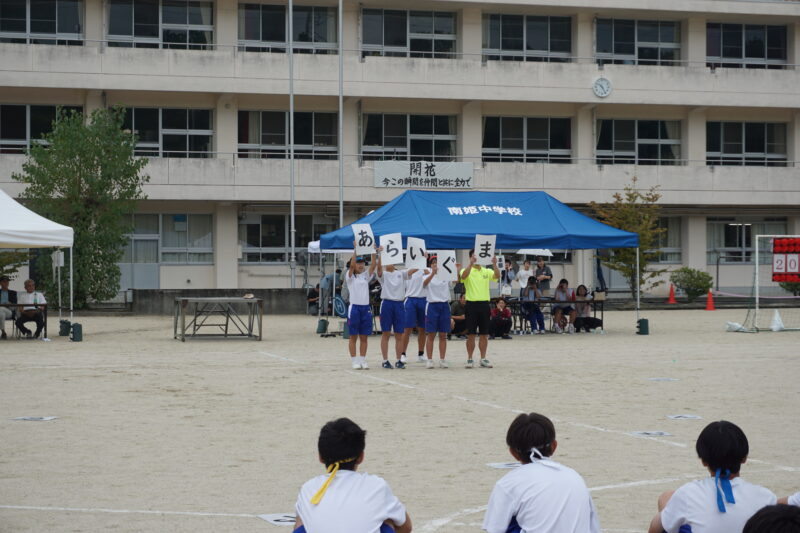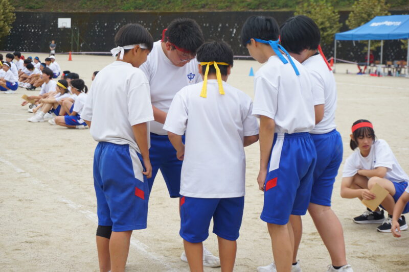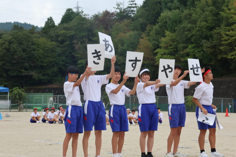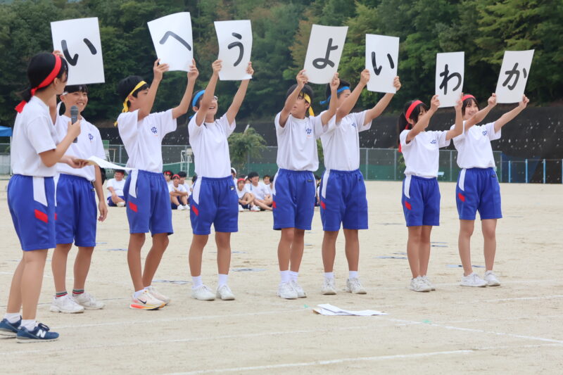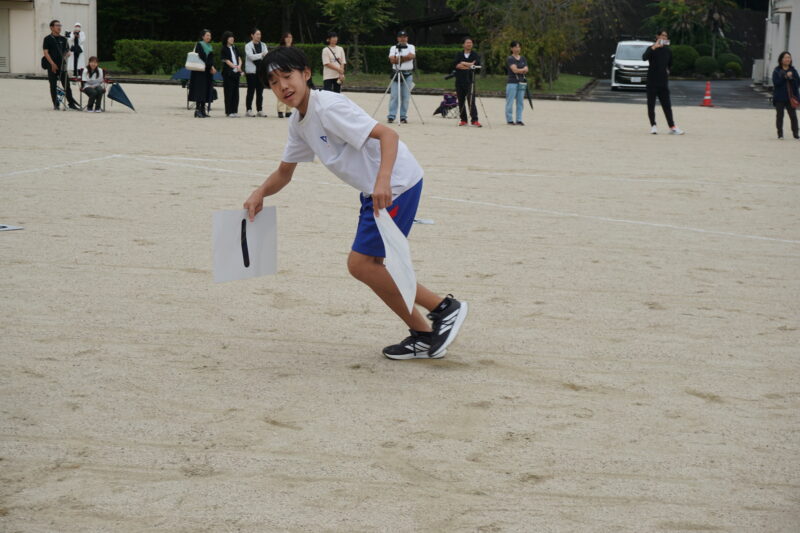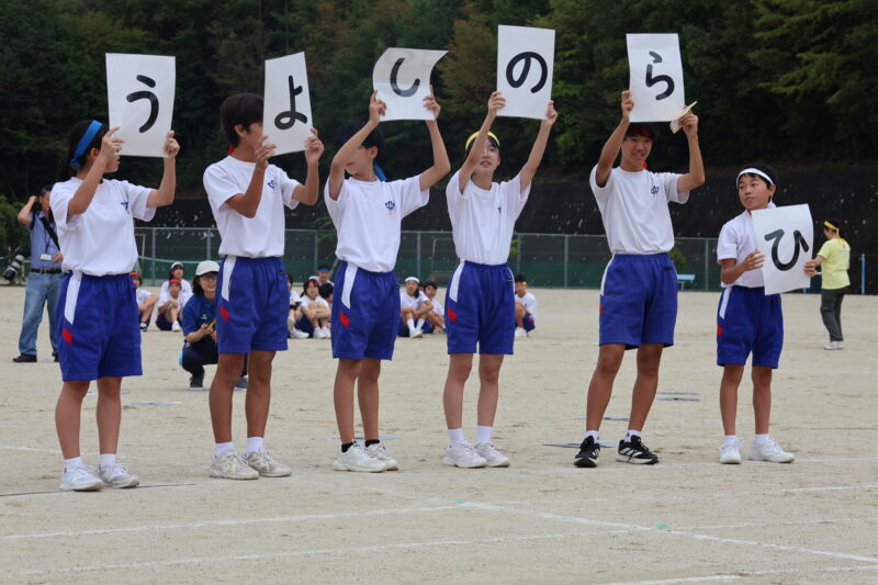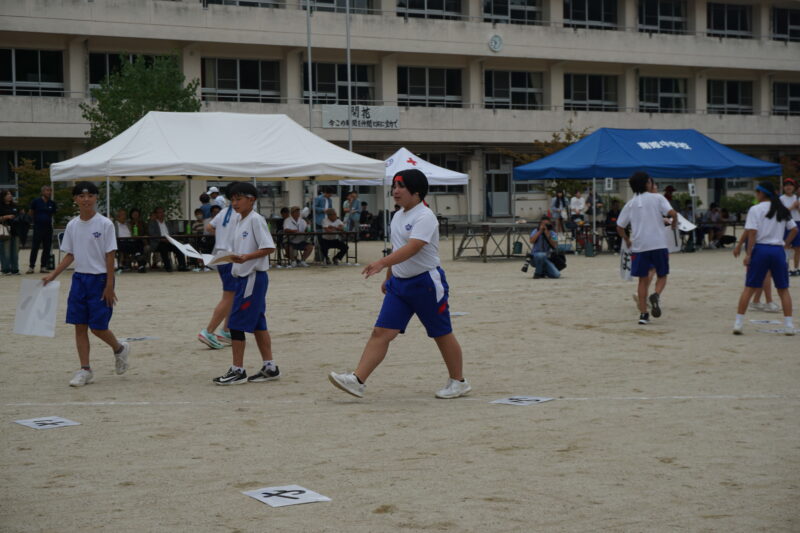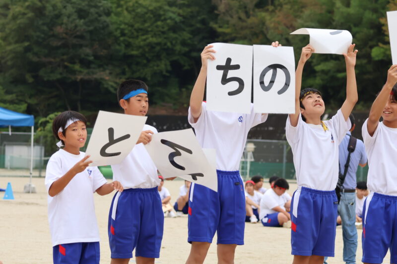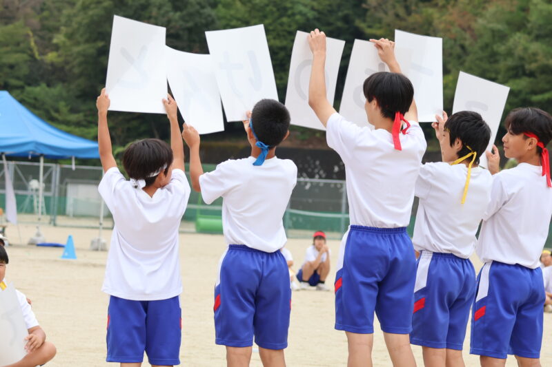 10月 02 2025 体育祭 part6:縦割り種目 体育祭の点数の入る競技種目は学級ごと。「せっかく縦割りで活動しているから、何か楽しい種目を取り入れよう」と生徒会が考えた種目。 それぞれのグループごとにお題が配られ、その答えを考え、グラウンドに散らばっているひらがなカードを集め、全員で答えを言うというものでした。 グループで相談したり協力してカードを探したりして、とても仲の深まるいい種目だったなぁと思いました。ちょっと長かったけどね~。 生徒会の皆さん、素敵な種目を考えたね~。見ていてほんわか温かくなりました。